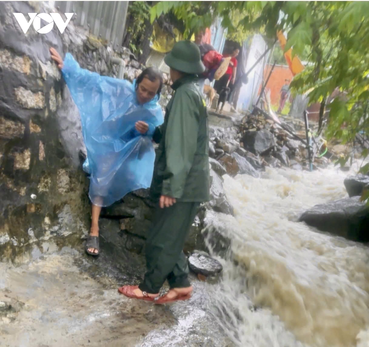 Tại khu vực miền núi, mưa lớn làm nước đổ về các khe suối khiến mực nước tại xã Trung Khánh Vĩnh dâng cao. Ở vị trí cầu tràn thôn Ba Cẳng, tuyến đường đi lên thủy điện sông Chò bị ngập, nước chảy xiết. Chính quyền địa phương đã kịp thời giăng dây, cảnh báo nguy hiểm và cử lực lượng túc trực, không cho người dân qua lại khu vực nguy hiểm.