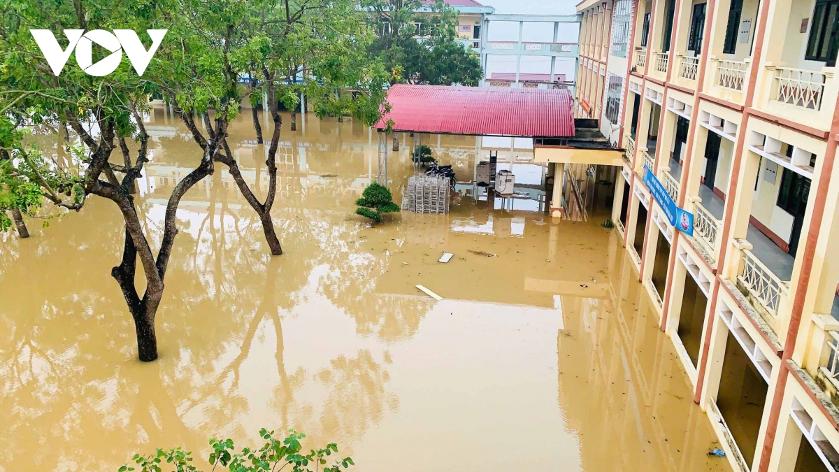 Theo ghi nhận của phóng viên, dù nước đã rút, nắng đã lên nhưng những bộ bàn ghế ở các lớp học tầng 1 của nhà trường vẫn còn lấm lem bùn đất, mảng tường hiện rõ dấu mực nước dâng lên cao khiến nhà trường bị ngập lụt, việc đi dạy, học của toàn bộ giáo viên, học sinh gần như bị đảo lộn, giao thông bị chia cắt cục bộ, mất điện, nước sinh hoạt, nhà cửa đều chìm trong biển nước lũ.