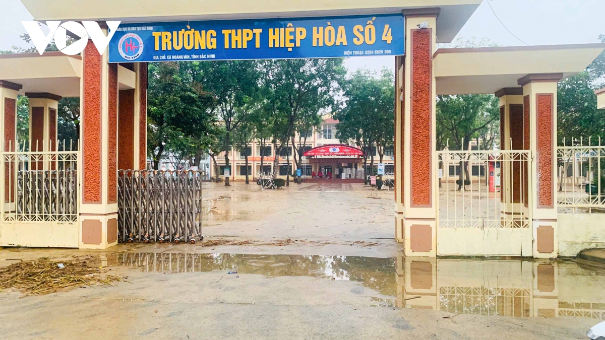 Thầy Nguyễn Đức Thiện – Hiệu trưởng Trường THPT Hiệp Hoà số 4, tỉnh Bắc Ninh cho biết, ảnh hưởng của hoàn lưu bão số 11, toàn bộ diện tích nhà trường bị ngập sâu trong biển nước, với vị trí sâu nhất khoảng 1,5m. Trong ngày 8/10 ngay khi nhận được thông tin chỉ đạo, nhà trường chủ động thông báo tới toàn thể giáo viên, học sinh nghỉ học tại nhà để đảm bảo an toàn.