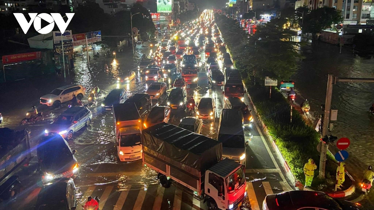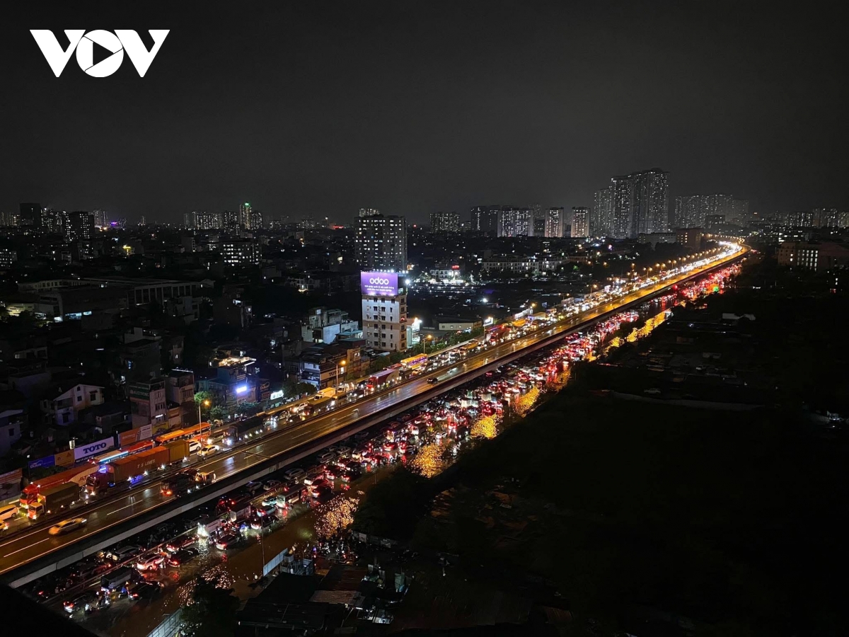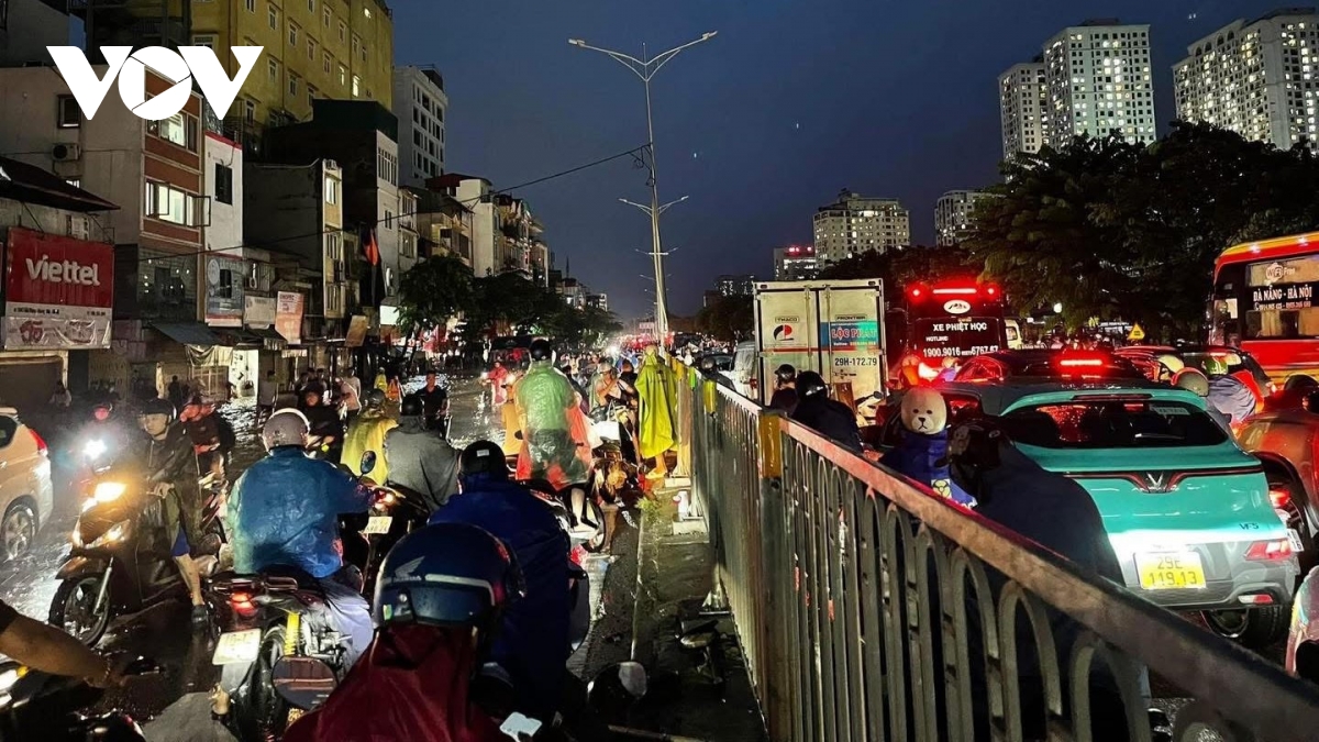 VOV.VN - Đến 20h00 tối 30/9, dù mưa đã dứt, giao thông Hà Nội vẫn đang trong tình trạng ùn tắc khắp nơi. Nhiều trường học đã phải thông báo cho học sinh ở lại qua đêm vì cha mẹ các em vẫn còn "vật lộn" nhích từng bước trên đường.