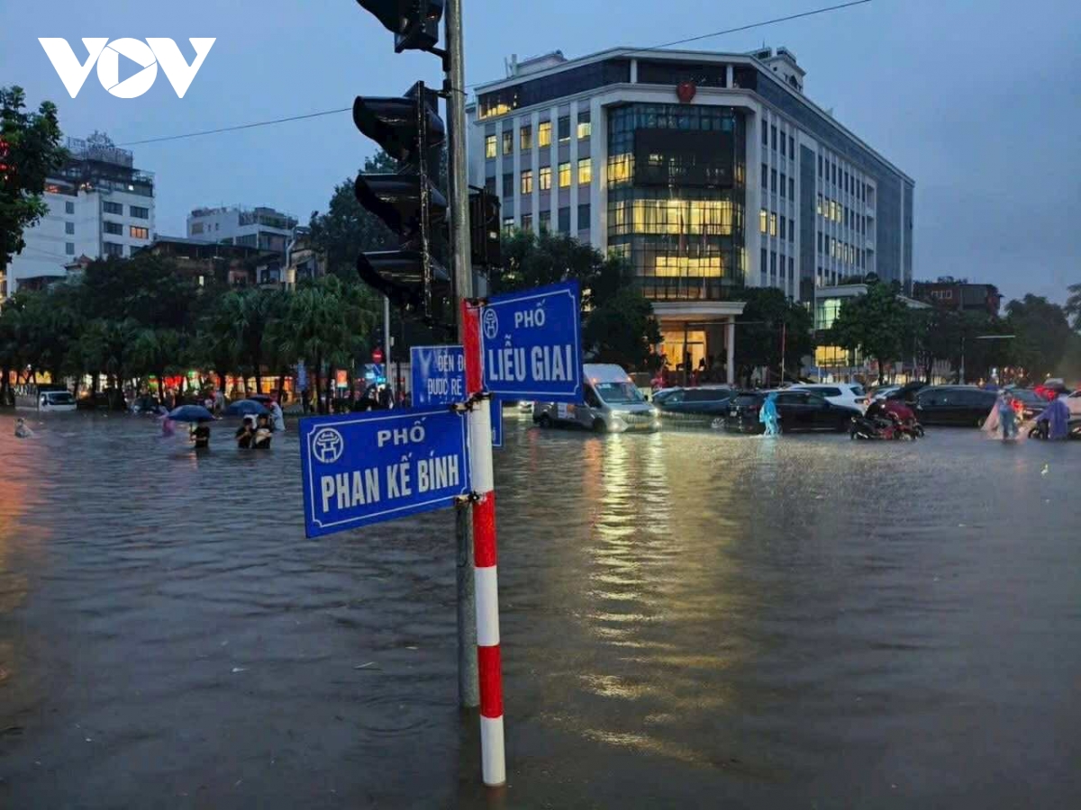 Đường Liễu Giai, Phan Kế Bính, khu vực Lotte đang ngập chìm trong biển nước.