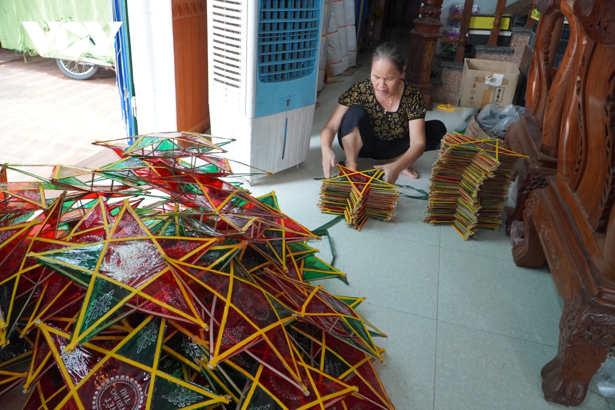 Tết Trung thu đang cận kề cũng là thời điểm làng nghề truyền thống làm đèn ông sao Báo Đáp (xã Hồng Quang, huyện Nam Trực, tỉnh Nam Định) thêm nhộn nhịp, tất bật.