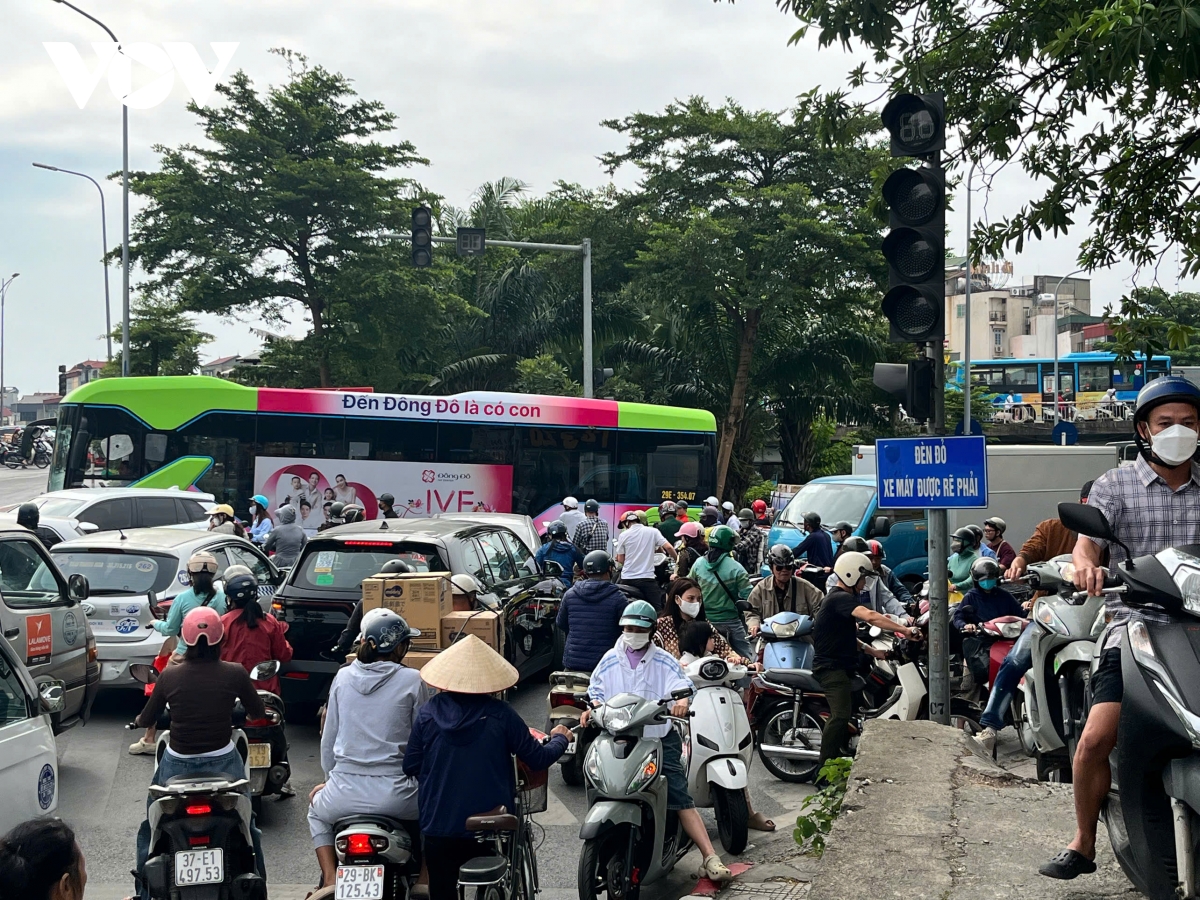 Giao thông Hà Nội hỗn loạn tại lối lên cầu Long Biên sáng 29/10