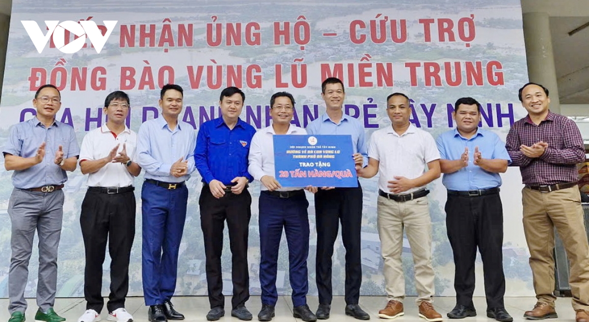 Hội doanh nhân trẻ thành phố Đà Nẵng cũng vừa tiếp nhận 20 tấn hàng hóa gồm các nhu yếu phẩm do Hội doanh nhân trẻ tỉnh Tây Ninh gửi tặng, hỗ trợ người dân vùng lũ; Trung ương Hội Doanh nghiệp trẻ Việt Nam trao 200 triệu đồng giúp bà con vùng lũ.