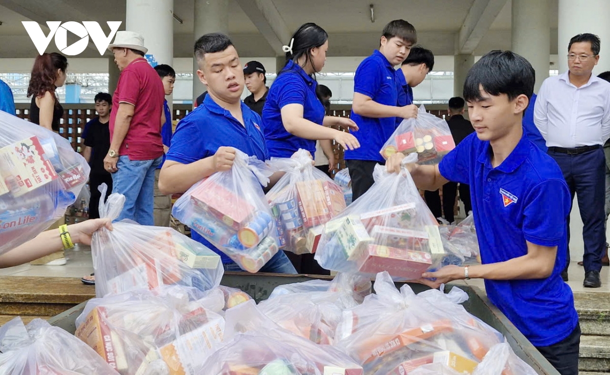 Đoàn viên, thanh niên thành phố Đà Nẵng chuẩn bị hàng hóa gửi đến người dân vùng lũ