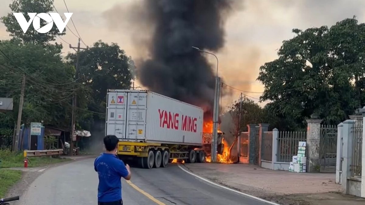 Tại hiện trường, sau cú va chạm mạnh, cả hai phương tiện bốc cháy dữ dội. Ngọn lửa bao trùm toàn bộ phần cabin, tạo ra cột khói đen bốc cao hàng chục mét.