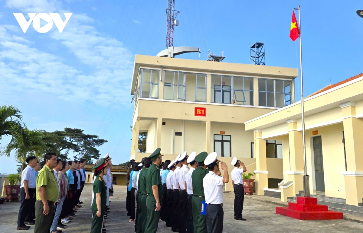 Hòn Khoai là đảo duy nhất trong hành trình không có dân ở. Đoàn công tác đến đã mang “hơi ấm đất liền” ra đảo. Tại Trạm ra đa 595, Đoàn đại biểu cùng các cán bộ, chiến sĩ làm nhiệm vụ trên đảo chào cờ buổi sáng và nghe chiến sĩ Hải quân đọc lại 10 lời thề danh dự của quân nhân
