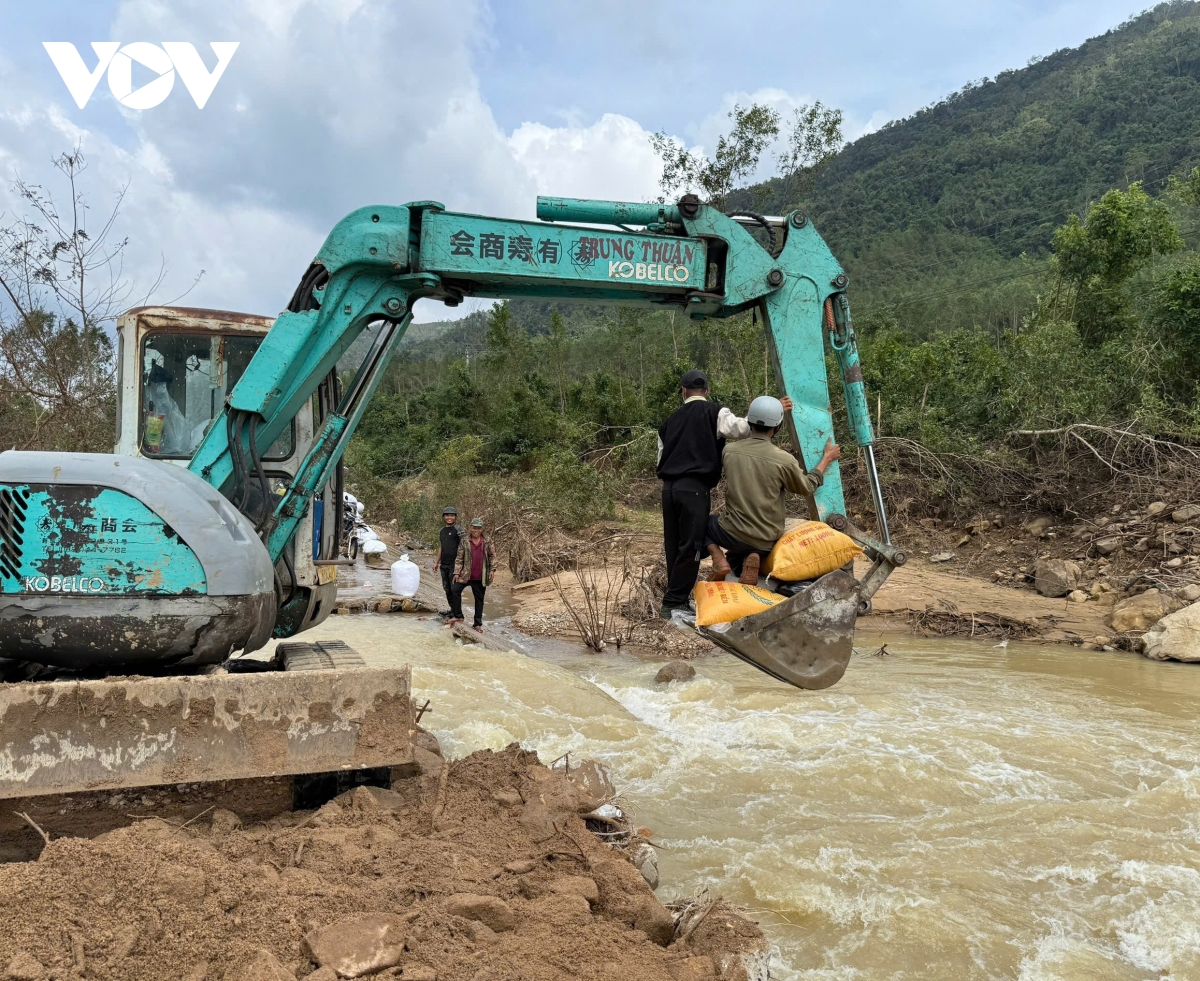 Chính quyền địa phương vận chuyển gạo vào vùng bị chia cắt để hỗ trợ nhân dân