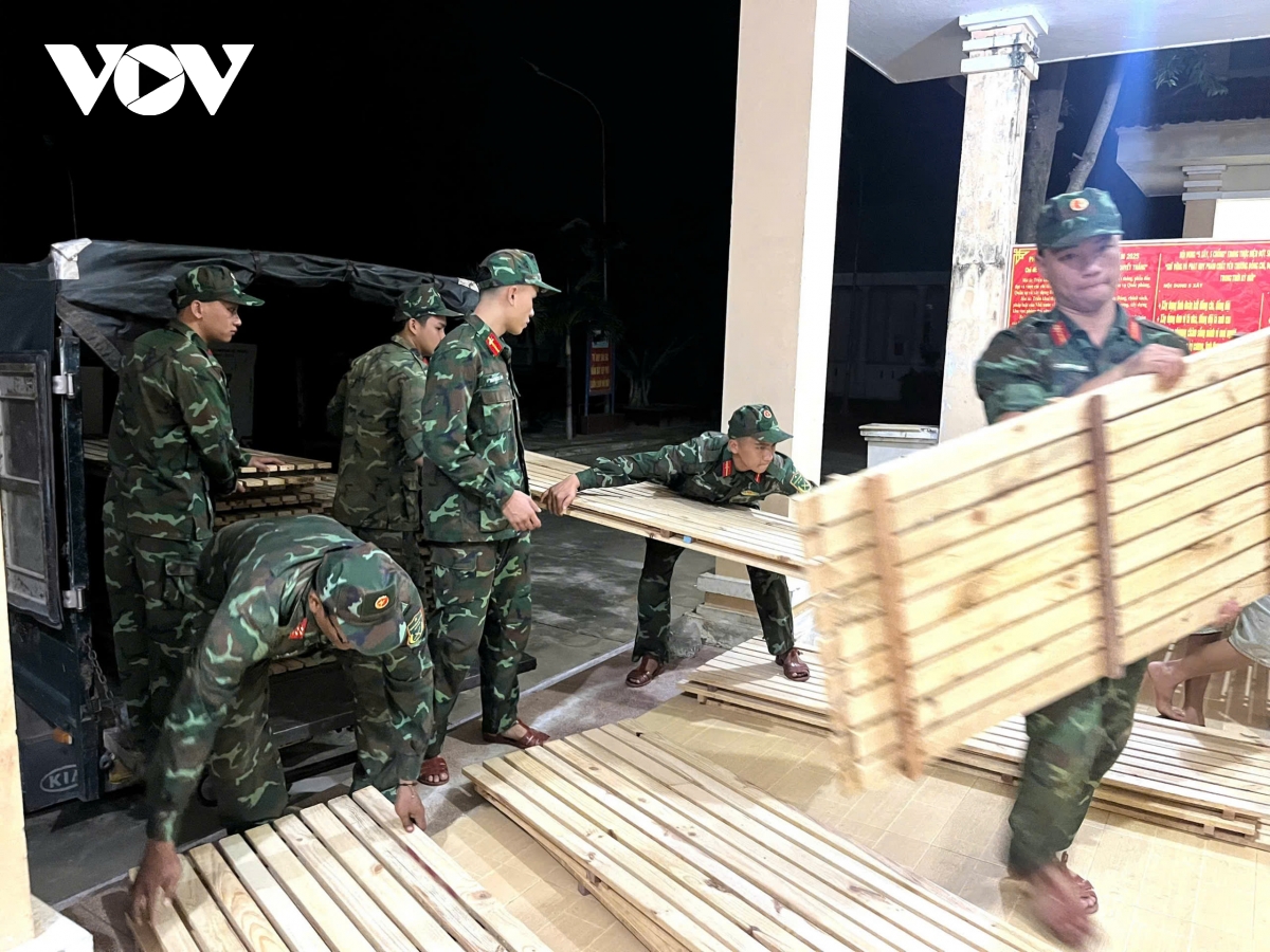 Cùng với làm nhà, bộ đội cũng tặng thêm giường và nhiều vật dụng thiết yếu khác để bà con vùng lũ sớm ổn định cuộc sống