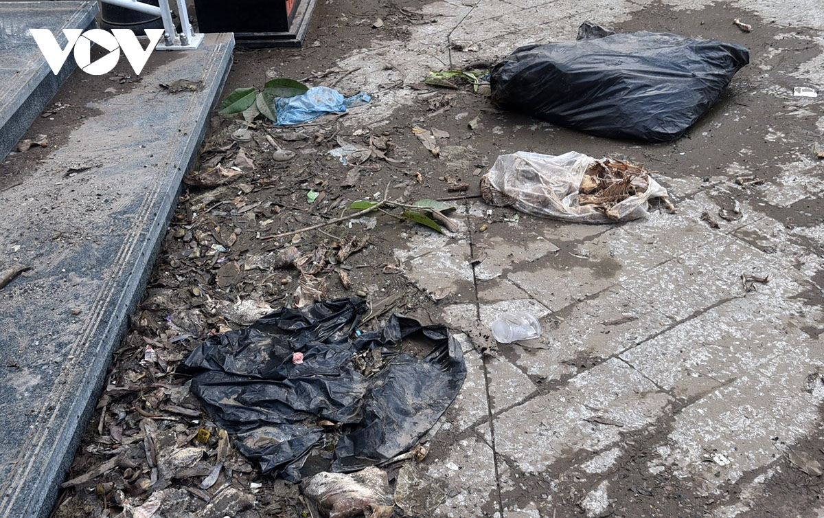Thực phẩm người dân ném xuống đường dạo ven hồ đoạn phố Mai Anh Tuấn bốc mùi