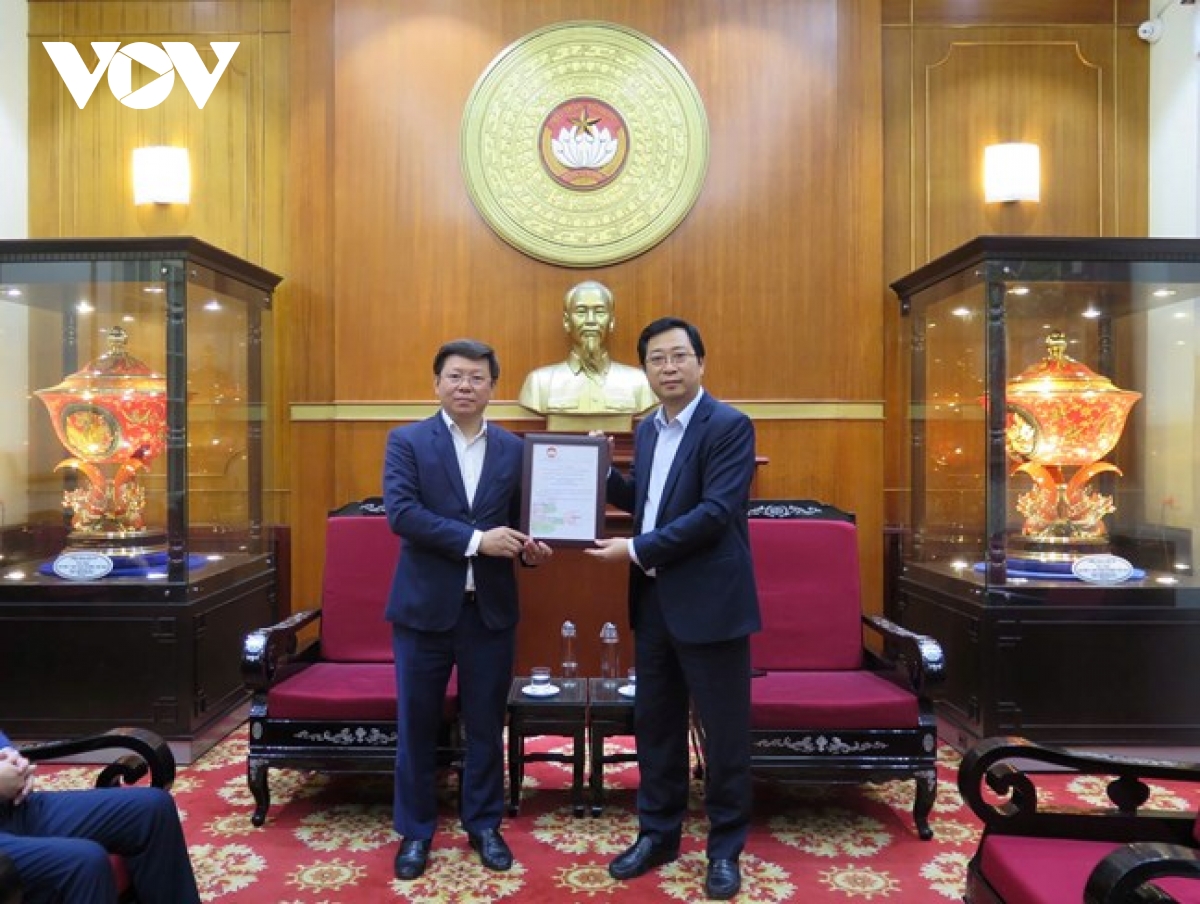 Ông Cao Xuân Thạo, Ủy viên Đoàn Chủ tịch, Trưởng Ban Công tác xã hội Cơ quan Ủy ban Trung ương MTTQ Việt Nam trao thư cảm ơn Ban Tuyên giáo và Dân vận Trung ương