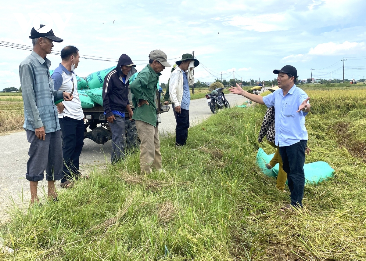 Người dân thành phố Huế khẩn trương thu hoạch lúa hè thu tránh thiệt hại do mưa bão