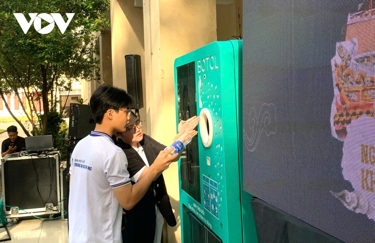Sinh viên tham gia mô hình “Đặt cọc - Hoàn trả” nhằm giảm rác thải nhựa