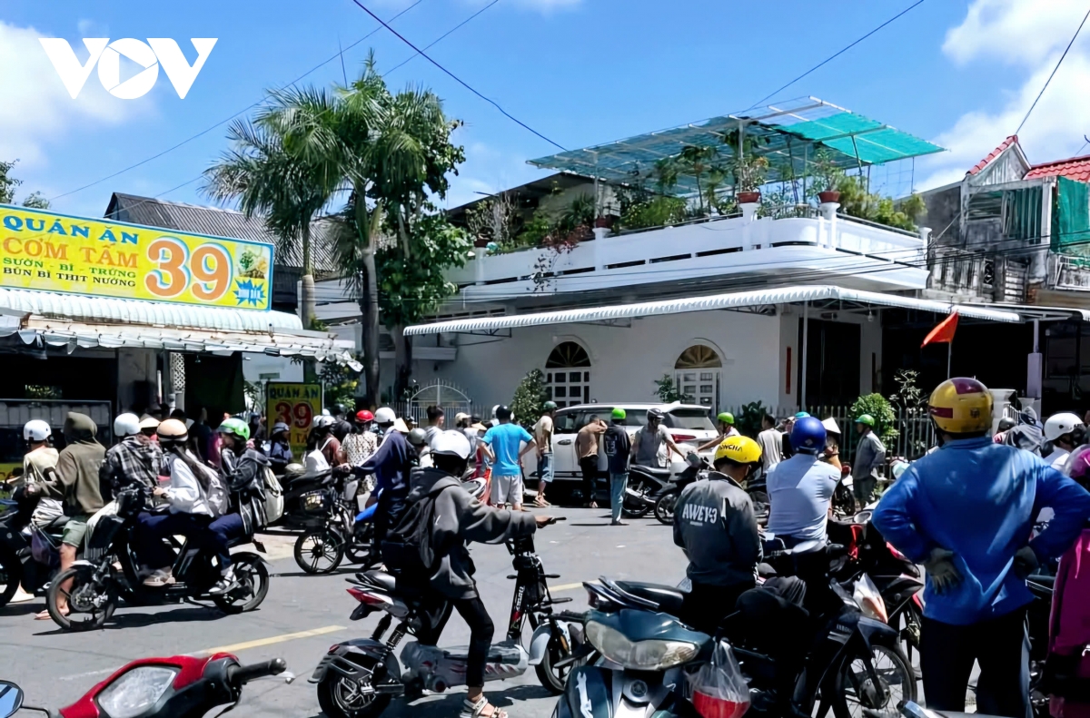 Nhiều người đi đường hiếu kỳ dừng lại xem vụ việc