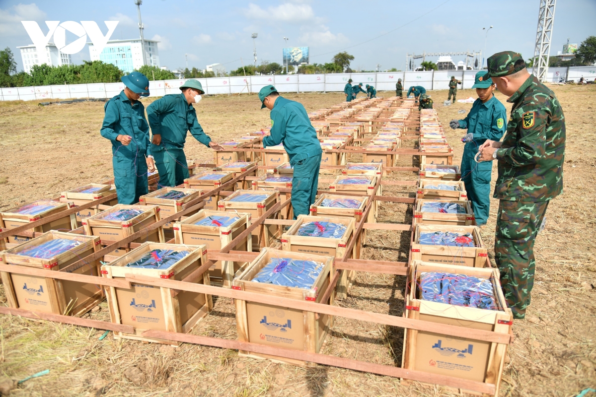 Đại tá Nguyễn Thành Ân, Phó Chỉ huy trưởng kiêm Tham mưu trưởng Bộ CHQS tỉnh trực tiếp kiểm tra công tác lắp đặt pháo tại các huyện, thành phố cho biết: “Đến thời điểm này, mọi công tác tiếp nhận, vận chuyển pháo và thiết bị bắn pháo, lắp đặt dàn pháo đã cơ bản hoàn thành. Trong quá trình thiết lập trận địa bắn pháo hoa, các cán bộ, chiến sĩ đã được Bộ CHQS tỉnh quán triệt nghiêm các quy tắc về yêu cầu kỹ thuật và công tác đảm bảo an toàn do đó đến thời điểm này việc lắp đặt pháo hoàn thành đúng theo kế hoạch, đảm bảo an toàn về phòng, chống cháy nổ”.