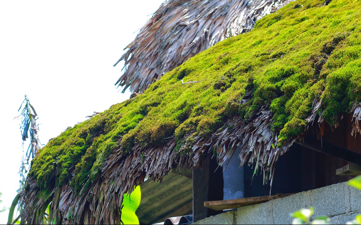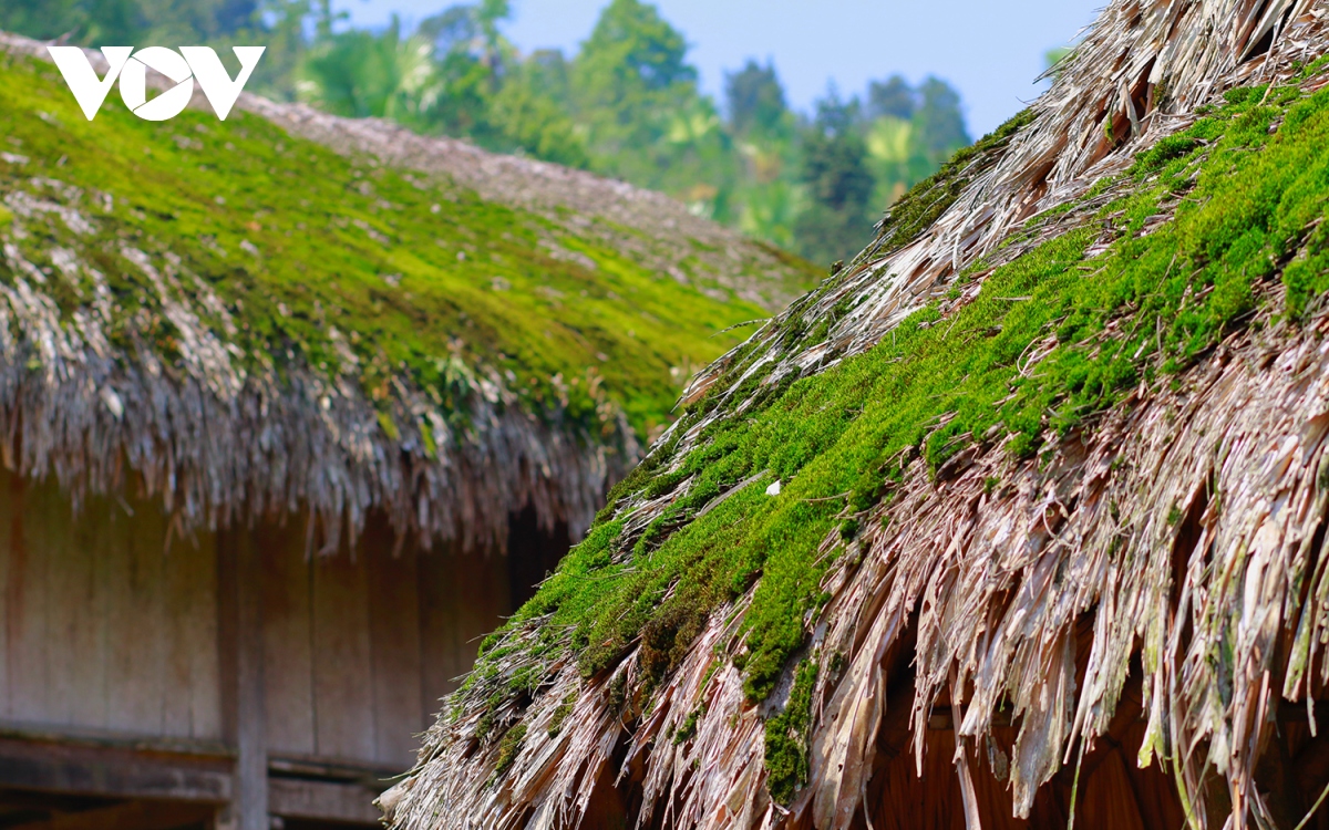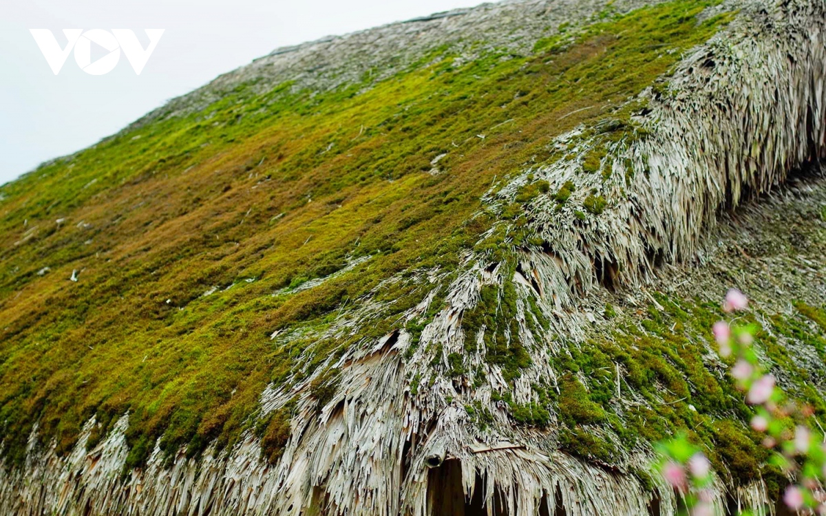 Tại bản, rêu bao phủ mái nhà quanh năm. Mùa hè, rêu khô, vàng do thời tiết nắng nóng và tiếp xúc trực tiếp với ánh nắng mặt trời. Còn mùa đông, độ ẩm cao, rêu phát triển xanh tốt.