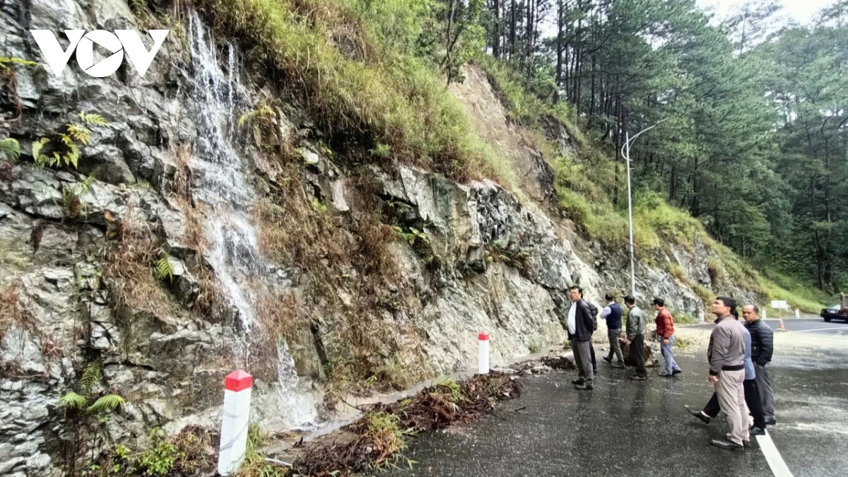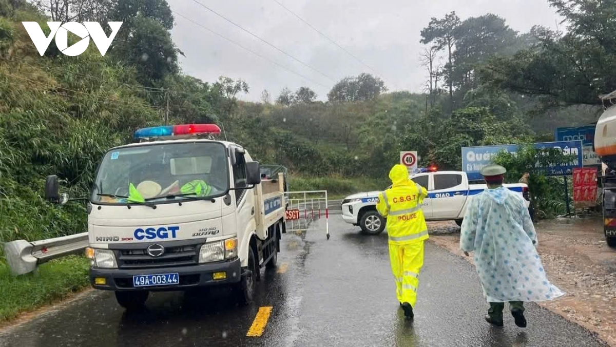Lực lượng chức năng tỉnh Lâm Đồng tổ chức chốt chặn dừng hoàn toàn việc lưu thông qua đèo Sông Pha - Quốc lộ 27 để đảm bảo an toàn.