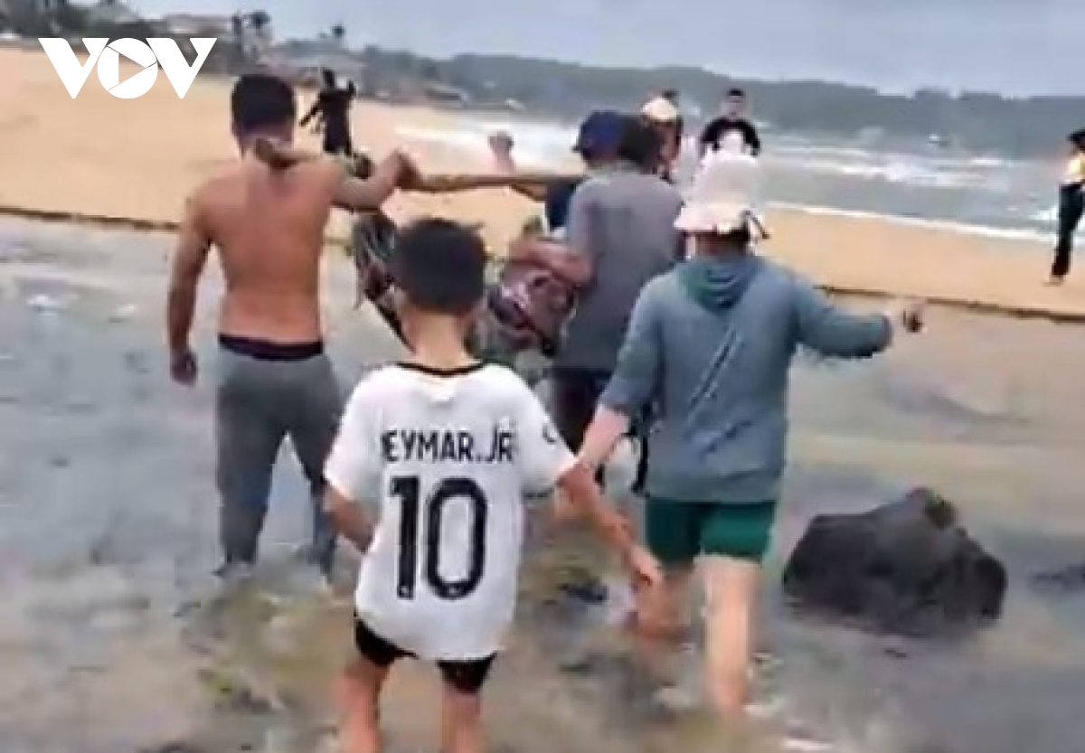 Theo thông tin ban đầu, khoảng 8h sáng, anh Đ.C.T (37 tuổi) cùng anh Đ.N.V (35 tuổi) và anh H.V.X (32 tuổi) cùng trú thôn An Cường, xã Vạn Tường, tỉnh Quảng Ngãi rủ nhau ra khu vực Gành Bầu, bãi biển thuộc thôn An Cường để lặn bắt tôm hùm nhí.