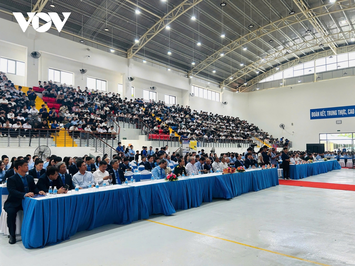 Phóng viên Thanh Thắng/VOV-Miền Trung thông tin: Sáng nay (5/9), tại xã biên giới Bờ Y, tỉnh Quảng Ngãi, trong không khí hân hoan của ngày khai trường trên cả nước, hơn 1.400 học sinh cùng 90 cán bộ, giáo viên, nhân viên Trường THPT Nguyễn Trãi đã long trọng tổ chức lễ khai giảng năm học 2025 - 2026. Ông Nguyễn Minh Triết, Bí thư Ban Chấp hành Trung ương Đoàn, Chủ tịch Hội Sinh viên Việt Nam dự lễ khai giảng.