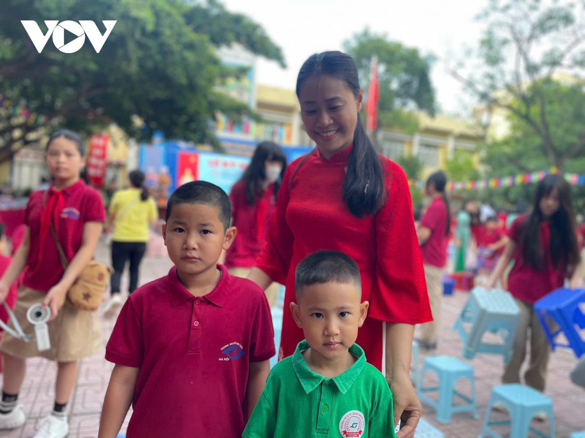 Trong không gian khiêm tốn ấy, sân trường vẫn được dọn dẹp, trang trí cờ hoa, khẩu hiệu, phông màn; âm thanh, màn hình trực tuyến được lắp đặt để hòa nhịp với lễ kỷ niệm 80 năm truyền thống ngành Giáo dục tại Hà Nội sáng 5/9. Giáo viên tập dượt văn nghệ, phụ huynh cùng dọn vệ sinh, chăm chút từng chậu hoa, hàng ghế. Gương mặt háo hức của học sinh như tiếp thêm sức nóng cho ngày hội lớn, dù cơ sở vật chất còn nhiều khó khăn. Các phương án phòng tránh mưa bão, nắng nóng cũng được tính đến, để lễ khai giảng diễn ra an toàn, trang trọng, tiết kiệm.