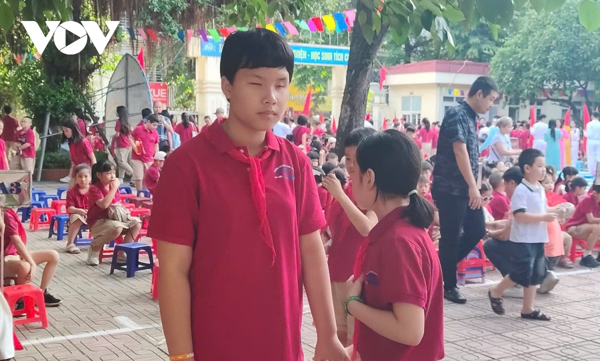 PV Vân Anh-Sỹ Thành/VOV.VN thông tin, sáng nay (5/9), hòa trong không khí khai trường của cả nước, thầy trò Trường Phổ thông cơ sở (PTCS) Nguyễn Đình Chiểu, một ngôi trường đặc biệt ở Hà Nội dành cho học sinh khiếm thị đã tiến hành khai giảng năm học mới. Đây là ngôi trường duy nhất tại Hà Nội dạy hòa nhập học sinh không khuyết tật với học sinh khiếm thị, tạo môi trường hỗ trợ lẫn nhau. Buổi lễ là dịp để học sinh khiếm thị thể hiện nỗ lực, sự cố gắng để chinh phục tri thức và vượt qua khó khăn, chinh phục ước mơ.