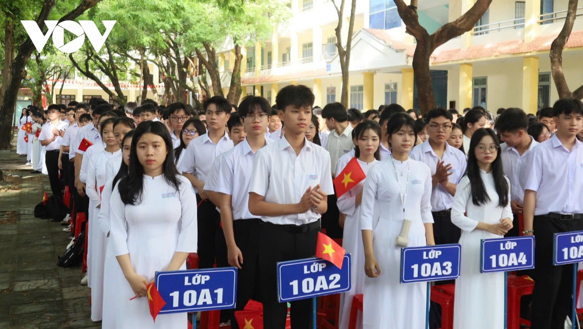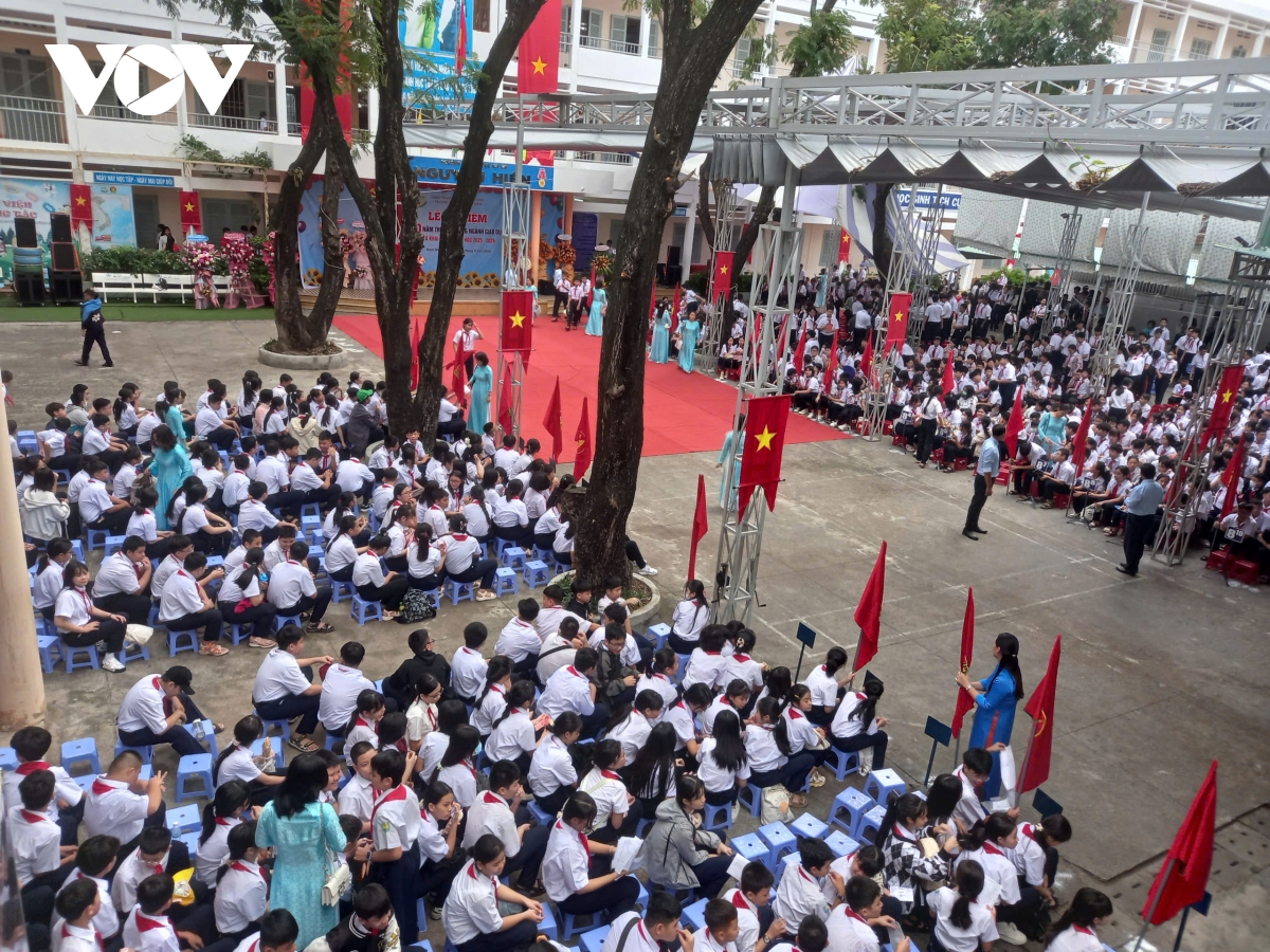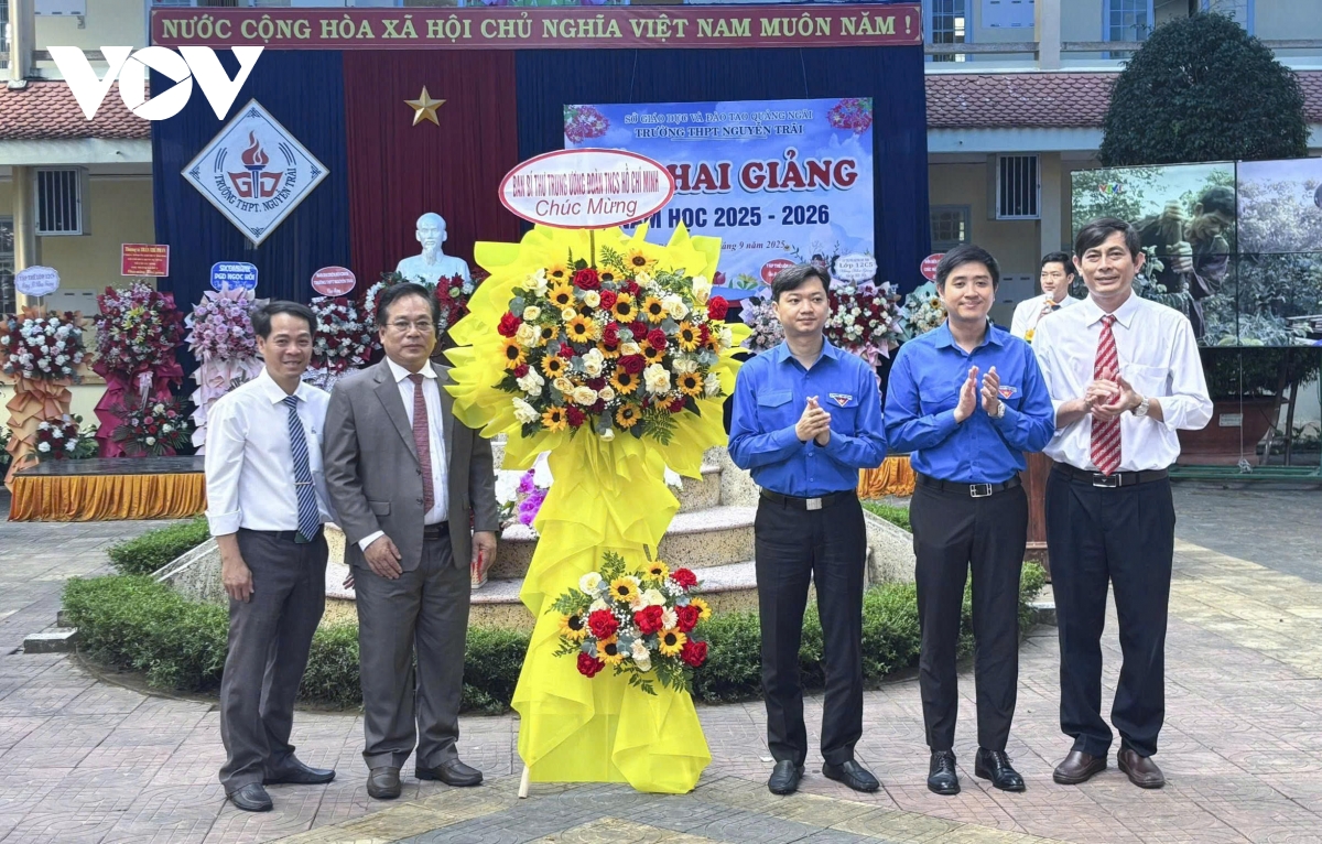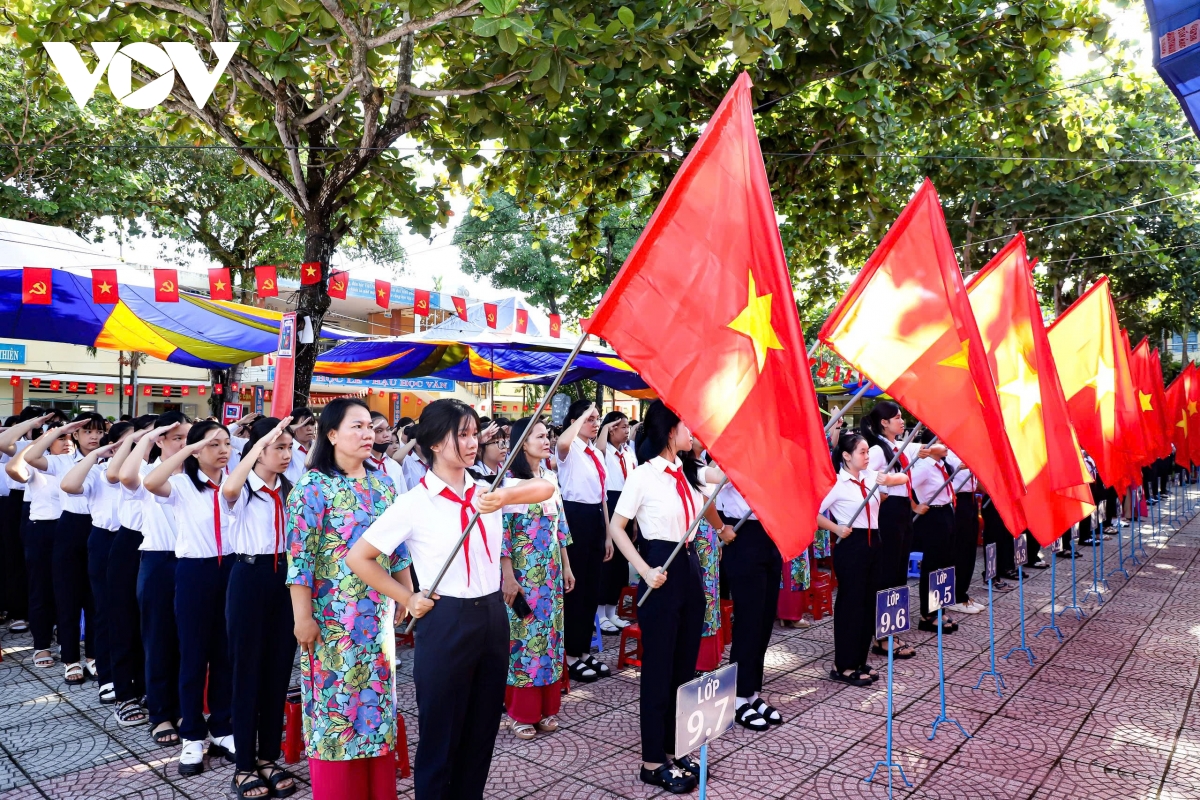 Thông tin từ Phóng viên Thanh Thắng/VOV-Miền Trung: Sáng nay, gần 450.000 học sinh các cấp ở tỉnh Quảng Ngãi đồng loạt bước vào lễ khai giảng năm học mới 2025 – 2026. Tại Trường Trung học Phổ thông Trần Quốc Tuấn, phường Cẩm Thành, ngay từ sáng sớm, thầy và trò đã tập trung trong không khí rộn ràng cờ hoa, băng rôn, tiếng trống khai trường.