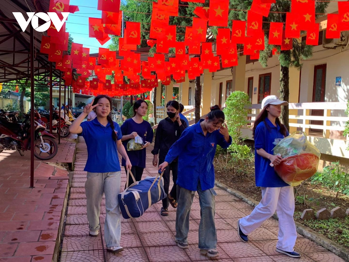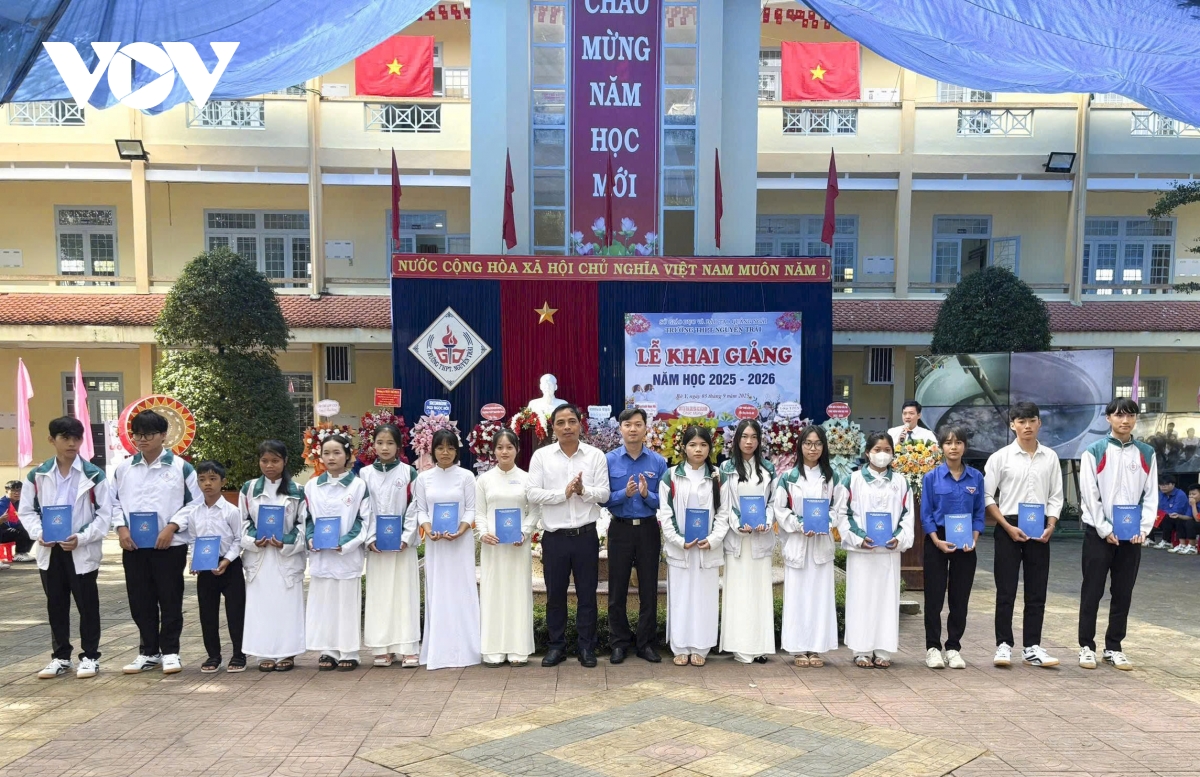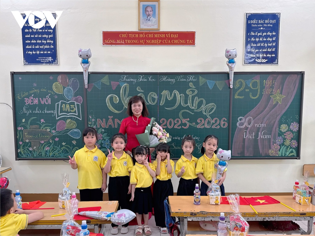 Phóng viên Bá Thăng/VOV.VN tại Nghệ An đưa tin Lễ khai giảng năm học 2025-2026 gắn với hoạt động kỷ niệm 80 năm thành lập Bộ Quốc gia Giáo dục (nay là Bộ Giáo dục và Đào tạo) tại 1517 Nghệ An chính thức bắt đầu từ 7h sáng. Mặc dù bị chịu thiệt hại nặng nề nề do ảnh hưởng của 3 cơn bão trong vòng chưa đầy 2 tháng nhưng ngành giáo dục tỉnh Nghệ An đã kịp thời hoàn tất việc khắc phục và chuẩn bị đầy đủ các điều kiện để tổ chức khai giảng đúng thời gian theo kế hoạch của Bộ Giáo dục và Đào tạo. Từ đồng bằng cho tới miền núi, không khí hân hoan, rộn ràng, rợp cờ hoa đón chào năm học mới.