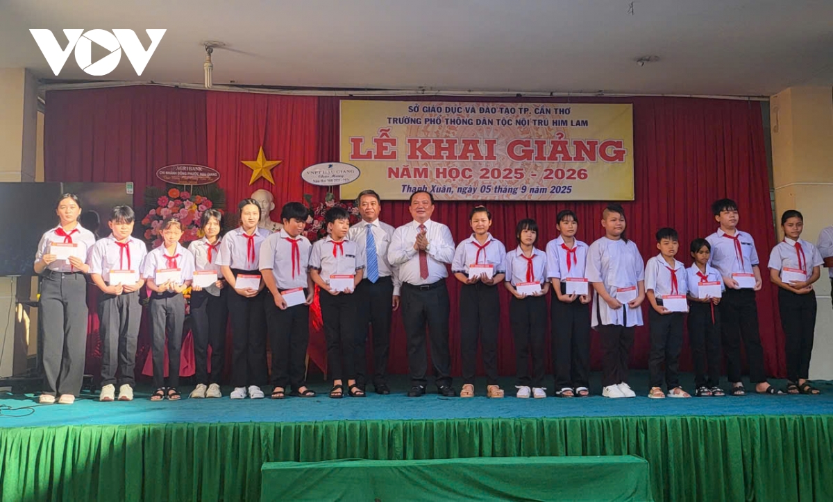 PV Tấn Phong/VOV-ĐBSCL Cần Thơ đưa tin: Ông Nguyễn Văn Hòa- Phó Chủ tịch UBND thành phố đã đến dự khai giảng năm học mới 2025-2026 tại Trường Phổ thông Dân tộc nội trú Him Lam ở xã Thạnh Xuân. Đây là trường có nhiều giáo viên và học sinh đạt giải trong các Hội thi cấp quốc gia thời gian qua.