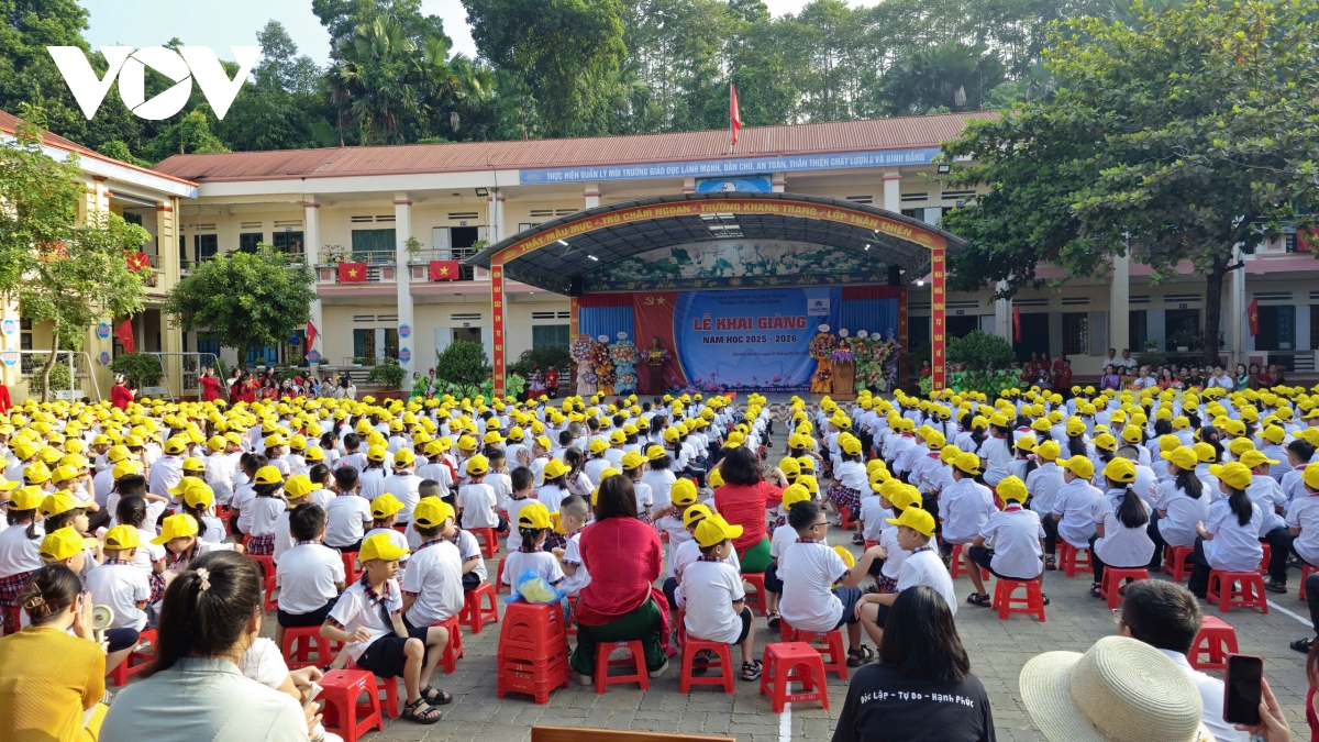 PV Đinh Tuấn/VOV-Tây Bắc thông tin: Cùng với học sinh cả nước, sáng nay 536 học sinh vùng cao tại Trường Tiểu học Púng Luông, xã Púng Luông, tỉnh Lào Cai (huyện Mù Cang Chải, tỉnh Yên Bái cũ) náo nức bước vào năm học mới, trong đó có 99 em học sinh lớp 1. Tiết trời vùng cao tạnh ráo, nắng vàng và không khí mát mẻ càng làm cho ngày tựu trường trường thêm rộn ràng, phấn khởi. Trên gương mặt rạng ngời của thầy cô giáo và các em học sinh người Mông ánh lên niềm tin, sự nỗ lực trong dạy và học, quyết tâm hoàn thành tốt nhiệm vụ, kế hoạch đã đề ra cho năm học mới 2025-2026.