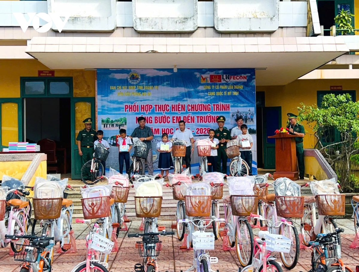 PV Thanh Hiếu/VOV-miền Trung đưa tin: Nhân dịp khai giảng năm học mới 2025-2026, Đồn Biên phòng Hướng Lập, Bộ đội Biên phòng Quảng Trị đóng chân tại xã Hướng Lập, tỉnh Quảng Trị đã cử cán bộ, chiến sĩ đưa các cháu học sinh đến trường dự khai giảng. Đồn cũng tặng 9 phần quà đến các cháu học sinh, những phần quà này trong chương trình “cán bộ, chiến sĩ quân đội nâng bước em đến trường” và Chương trình "Con nuôi đồn Biên phòng - nâng bước em đến trường”. Mỗi phần quà trị giá 1,5 triệu đồng (gồm 1 triệu tiền mặt và đồ dùng học tập, vở, cặp, áo ấm, áo mưa,….). Ngoài ra, hàng tháng, đơn vị hỗ trợ 500.000đ/cháu để học tập.