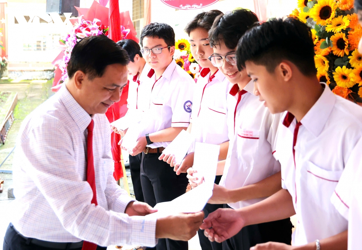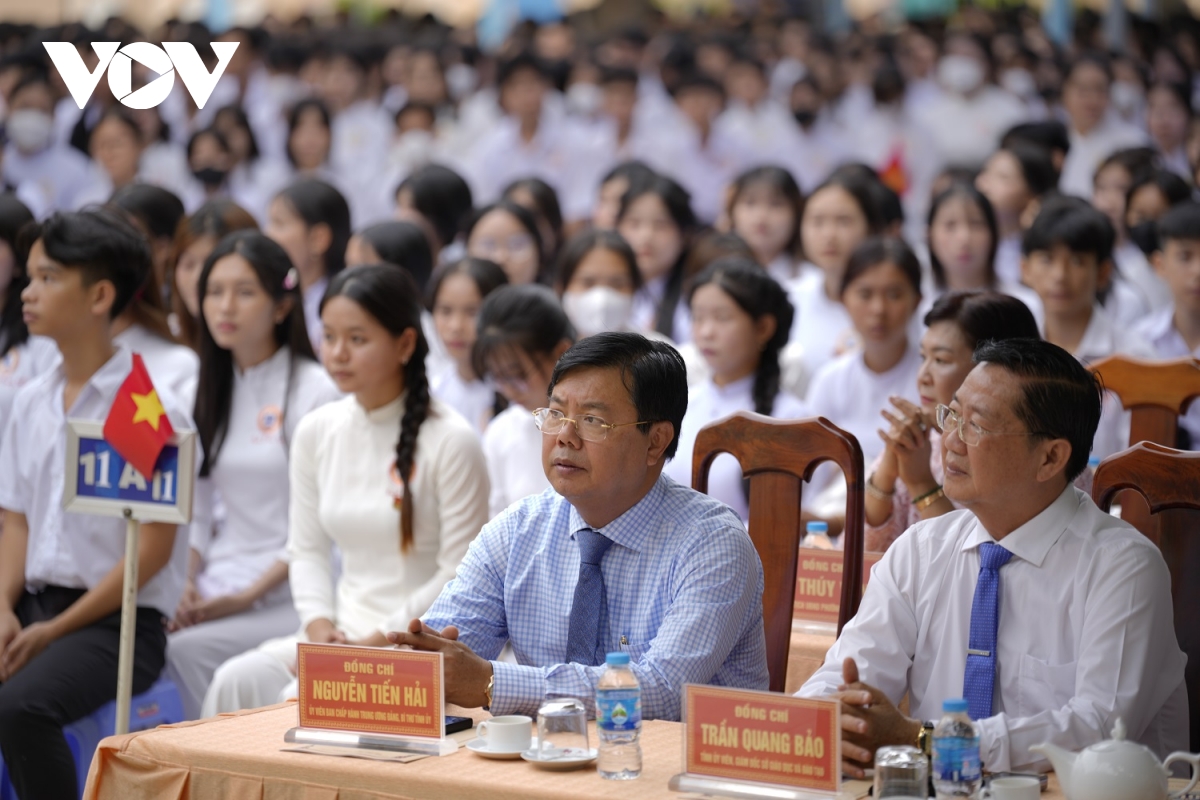 Tại lễ khai giảng, Phó Bí thư Tỉnh ủy, Chủ tịch UBND tỉnh- Lữ Quang Ngời đã trao 30 suất học bổng cho các em HS. Các đơn vị, nhà hảo tâm, nhà tài trợ trao 3 xe đạp điện; 32 phần học bổng cho các em HS. Ban giám hiệu nhà trường khen thưởng cho HS thủ khoa tốt nghiệp THPT, thủ khoa tuyển sinh lớp 10; lãnh đạo tỉnh trao bằng khen của Thủ tướng Chính phủ cho giáo viên… Cùng với cả nước, khoảng 720 ngàn học sinh tỉnh Vĩnh Long đang học tại 1.316 cơ sở giáo dục nô nức khai giảng năm học 2025 - 2026. Lãnh đạo tỉnh Vĩnh Long đã thành lập nhiều đoàn đến dự lễ khai giảng tại các điểm trường ở các cấp học trong toàn tỉnh.