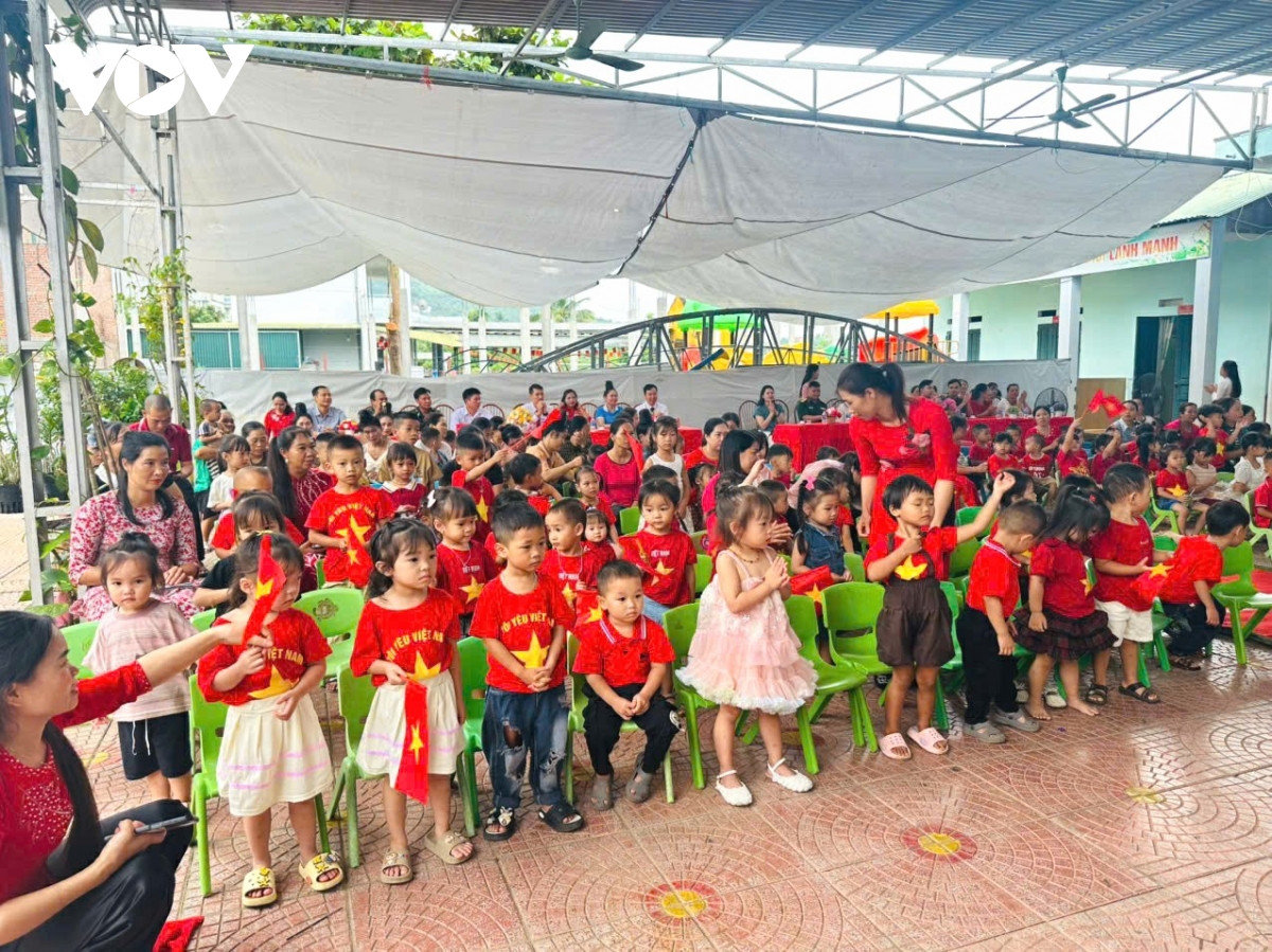 Phóng viên Thừa Xuân/VOV-Tây Bắc đưa tin: Cùng với học sinh toàn tỉnh, sáng nay (5/9), cô và trò Trường Mầm non Họa Mi, xã Phình Hồ, tỉnh Lào Cai (địa bàn thuộc huyện Trạm Tấu, tỉnh Yên Bái cũ) nô nức bước vào năm học mới. Năm học mới 2025 – 2026, trường Mầm non Họa Mi, xã Phình Hồ có 21 lớp, với trên 600 em học sinh, chủ yếu là con em đồng bào dân tộc Mông.