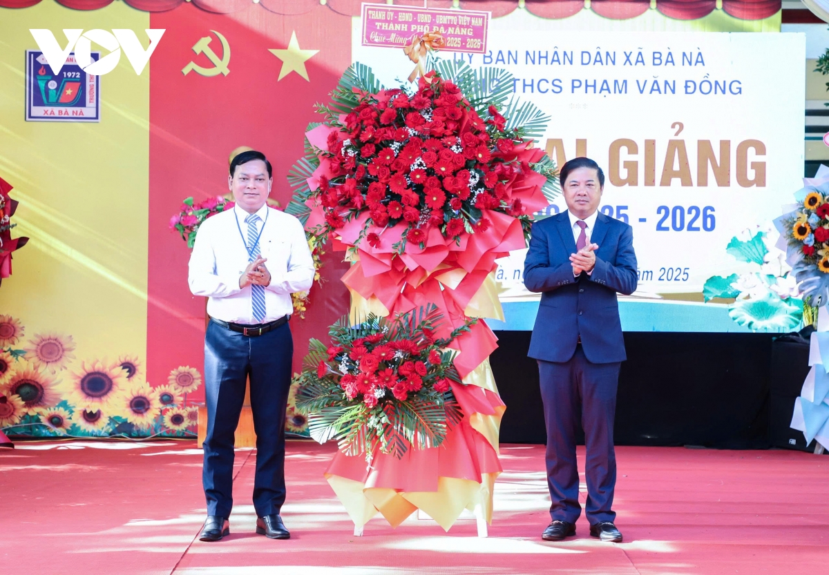 Phóng viên Long Phi/VOV-Miền Trung tại Đà Nẵng thông tin: Sáng 5/9, ông Lương Nguyễn Minh Triết, Chủ tịch UBND thành phố Đà Nẵng dự và tặng hoa chúc mừng thầy và trò Tại Trường THCS Phạm Văn Đồng (xã Bà Nà). Năm học 2024 - 2025, Trường THCS Phạm Văn Đồng đạt được nhiều kết quả tích cực; chất lượng giáo dục không ngừng được nâng cao, nhiều em đạt thành tích cao trong các kỳ thi học sinh giỏi cấp thành phố, nhiều em đỗ vào trường THPT tốp đầu thành phố.