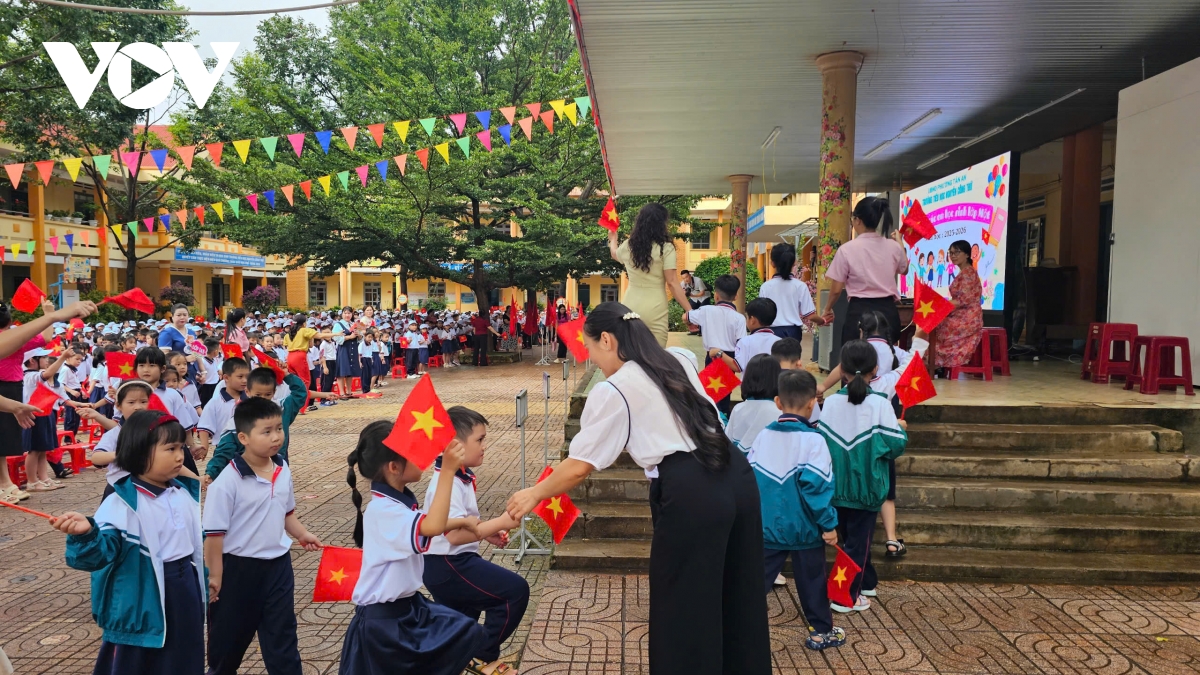 Phản ánh của phóng viên Tuấn Long/VOV-Tây Nguyên: Hàng nghìn học sinh ở biên giới Đắk Lắk nô nức khai giảng năm học mới. Năm học 2025 – 2026, tại 4 xã biên giới của tỉnh Đắk Lắk gồm: Ia Lốp, Ia R’vê, Ea Bung và Buôn Đôn có 7.892 học sinh từ bậc Mầm non đến Trung học phổ thông nô nức bước vào năm học mới.