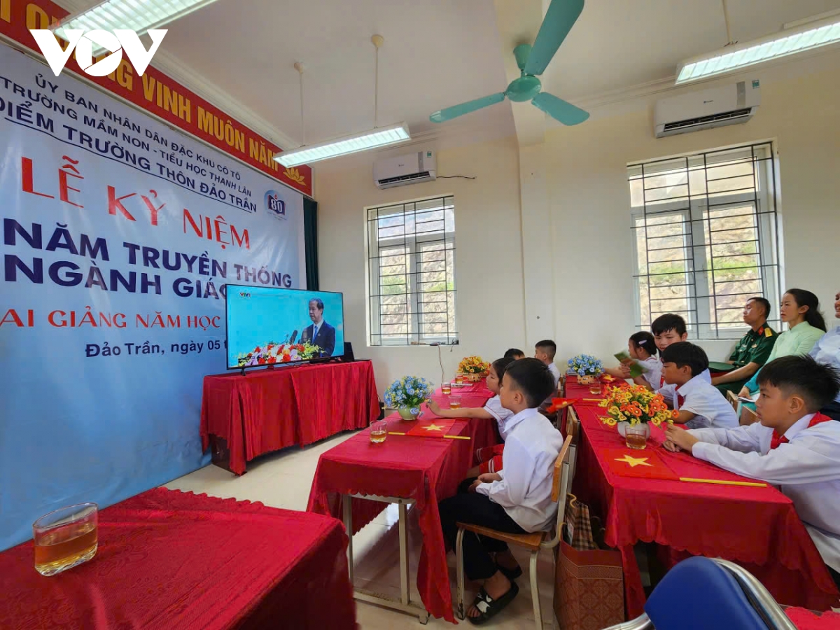 Riêng các trường còn khó khăn về cơ sở vật chất, thiết bị chủ động phối hợp với các đơn vị lân cận, báo cáo UBND xã, phường, đặc khu có phương án hỗ trợ cáp tín hiệu, bố trí đầy đủ tivi ở các khu vực sân lễ, bảo đảm cho đại biểu, học sinh, giáo viên thuận tiện theo dõi hết chương trình lễ khai giảng năm học 2025 - 2026 cùng với cả nước trên sóng truyền hình trực tiếp của đài truyền hình quốc gia.
