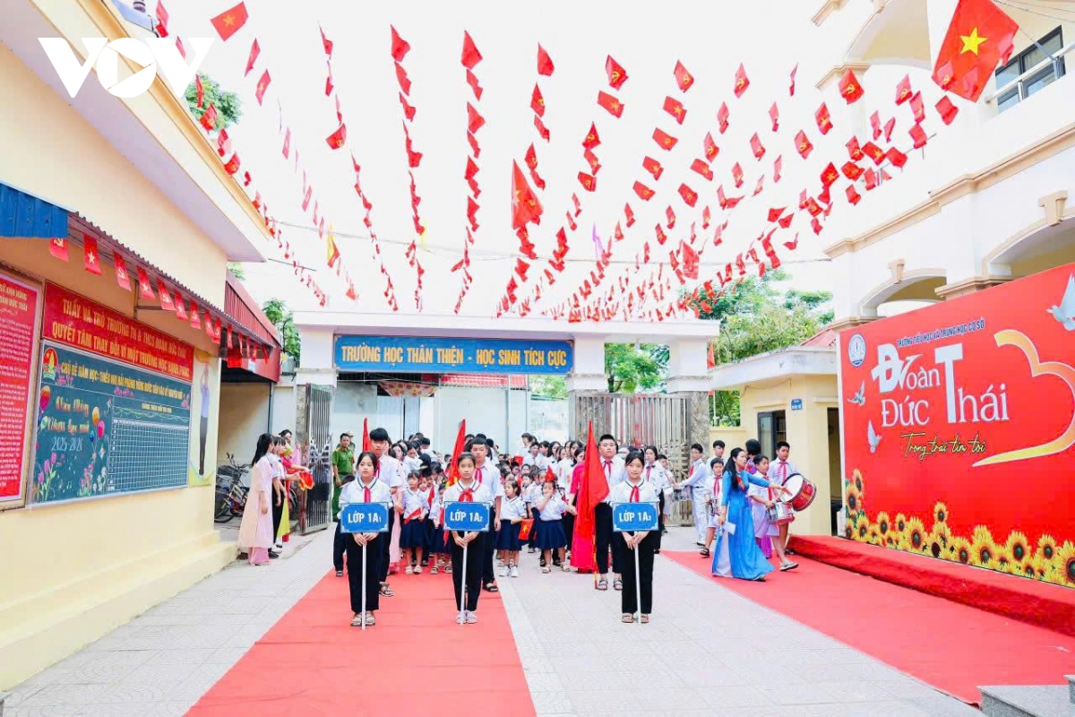 Phóng viên Vân Hồng - CTV Trần Hồng/VOV.VN tại Ninh Bình phản ánh: Không khí rộn ràng trước thềm khai giảng tại Trường THCS Lộc Hạ, Ninh Bình Trong tiết thu tháng 9 dịu mát, hòa chung vào không khí cả nước hân hoan kỷ niệm 80 năm Quốc khánh 2/9 và ngày toàn dân đưa trẻ đến trường, sân Trường THCS Lộc Hạ (phường Thiên Trường, tỉnh Ninh Bình) rực rỡ cờ hoa, sẵn sàng chào đón năm học mới 2025 – 2026.