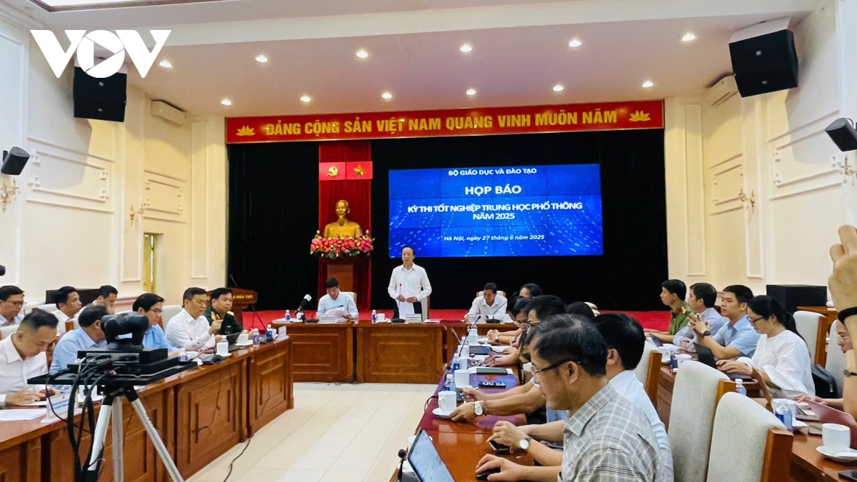 VOV.VN - Chiều nay 27/6, tại cuộc họp báo sau khi kết thúc kỳ thi tốt nghiệp THPT 2025, Bộ Giáo dục - Đào tạo khẳng định: Đề thi không khó, vẫn bám sát đề tham khảo nhưng sẽ lắng nghe phản hồi và xem xét làm rõ vấn đề; việc xuất hiện thông tin lọt đề khi chưa kết thúc quá trình làm bài sẽ được xác minh, xử lý nghiêm.