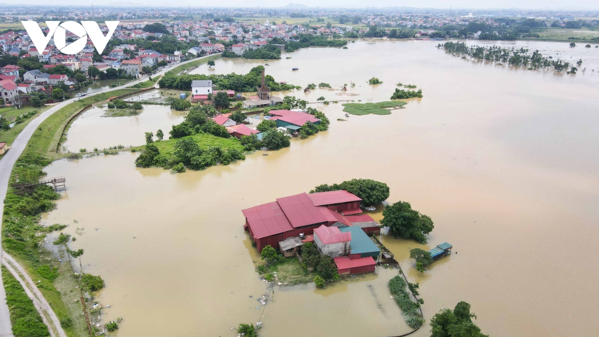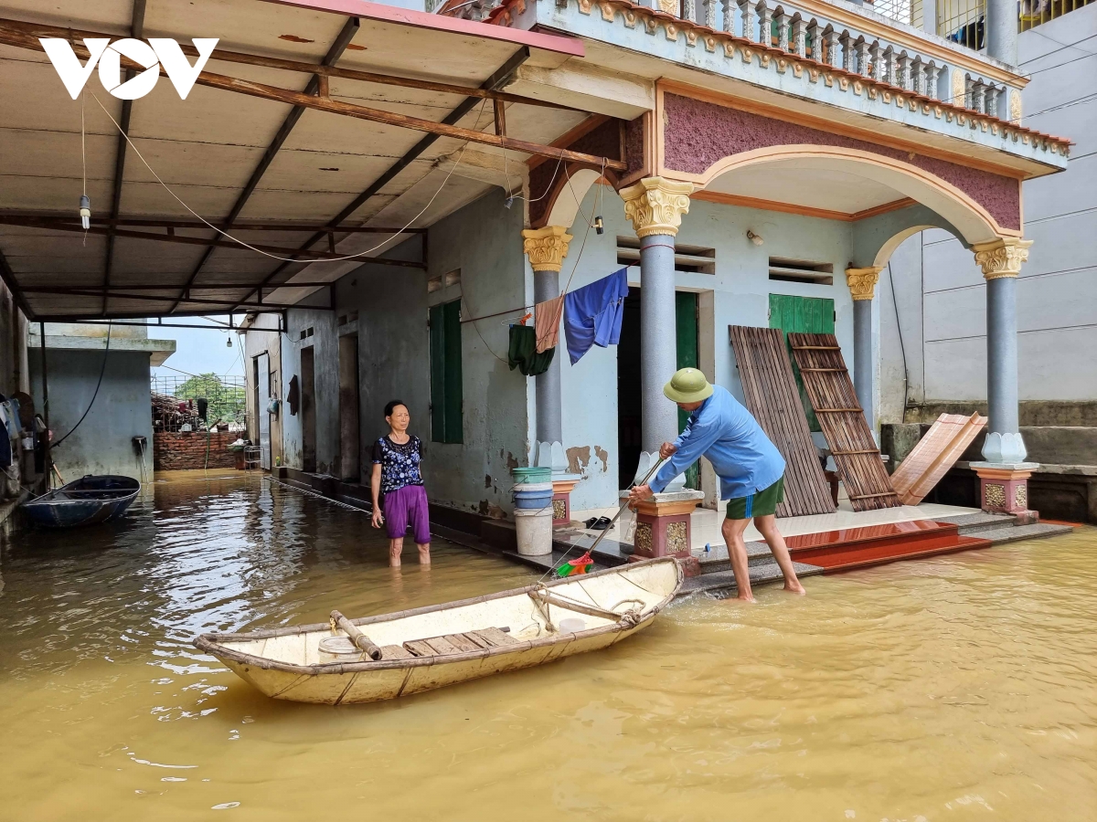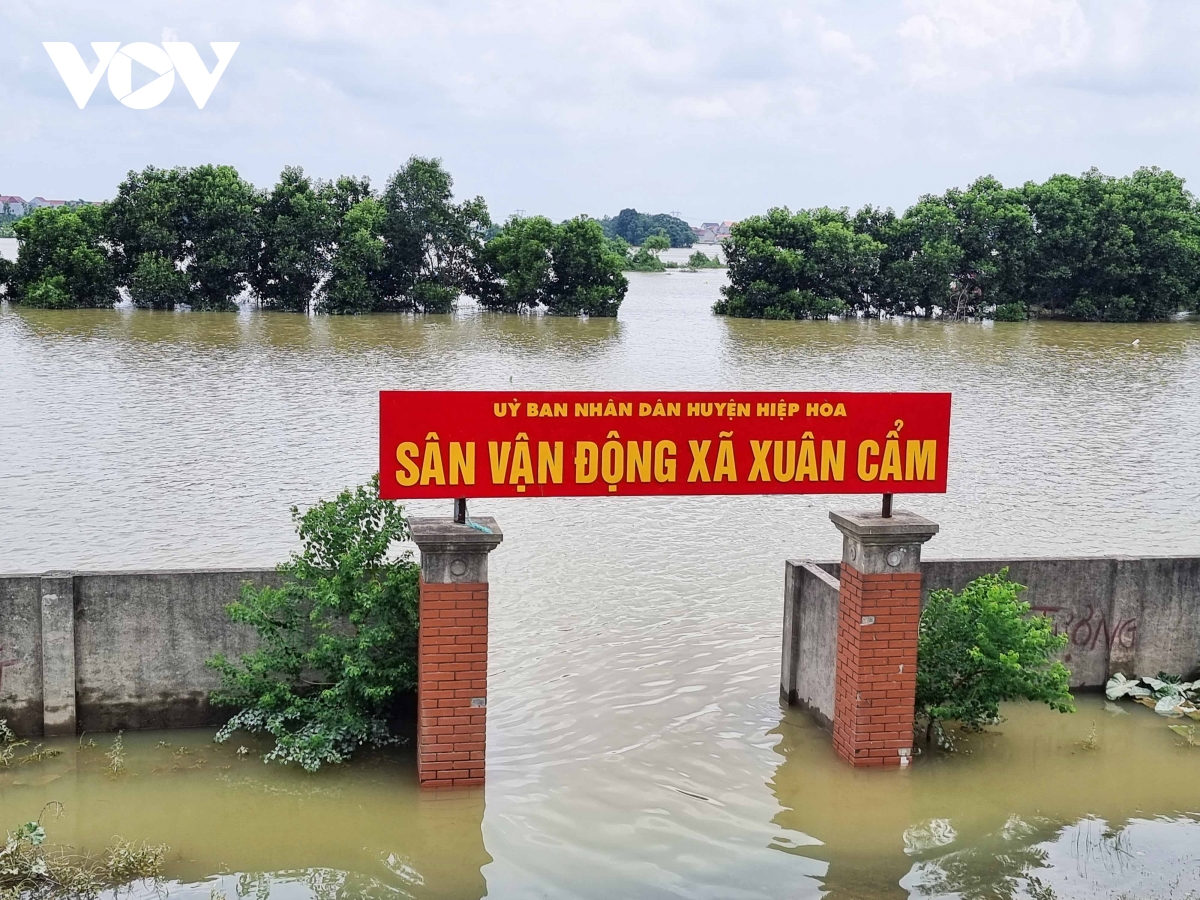Theo ghi nhận của phóng viên Báo Điện tử Tiếng nói Việt Nam, ngày 24/6 tại khu vực gần trung tâm văn hóa thôn Xuân Giang, xã Mai Trung, huyện Hiệp Hòa (Bắc Giang) có nhiều hộ dân sinh sống trong khu vực bị ảnh hưởng lớn do mực nước sông Cầu dâng cao.