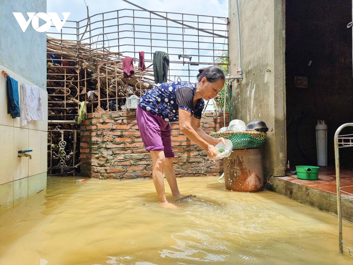 Bà Đỗ Thị Bính ở thôn Ninh Tào, xã Hợp Thịnh, huyện Hiệp Hòa, tỉnh Bắc Giang cho biết: "Mực nước sông dâng cao khiến điều kiện sinh hoạt trong gia đình gặp nhiều đảo lộn do thiếu nước máy sinh hoạt. Chỉ mong nước sông Cầu sớm rút để cuộc sống của người dân chúng tôi sớm ổn định lại bình thường".