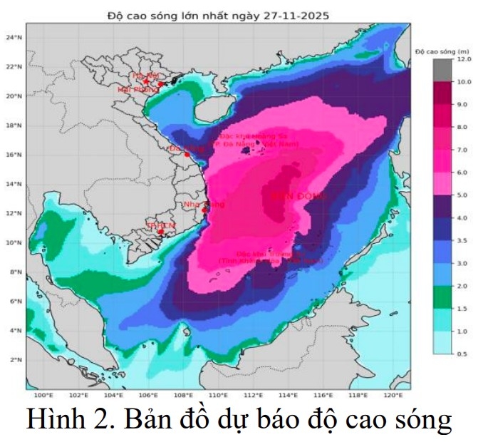 Cấp độ rủi ro thiên tai trên biển ở mức 2; riêng khu vực Giữa Biển Đông (bao gồm vùng biển phía Bắc đặc khu Trường Sa) ở mức 3. Toàn bộ tàu thuyền hoạt động tại các khu vực này đều có nguy cơ cao chịu tác động của gió mạnh và sóng lớn.