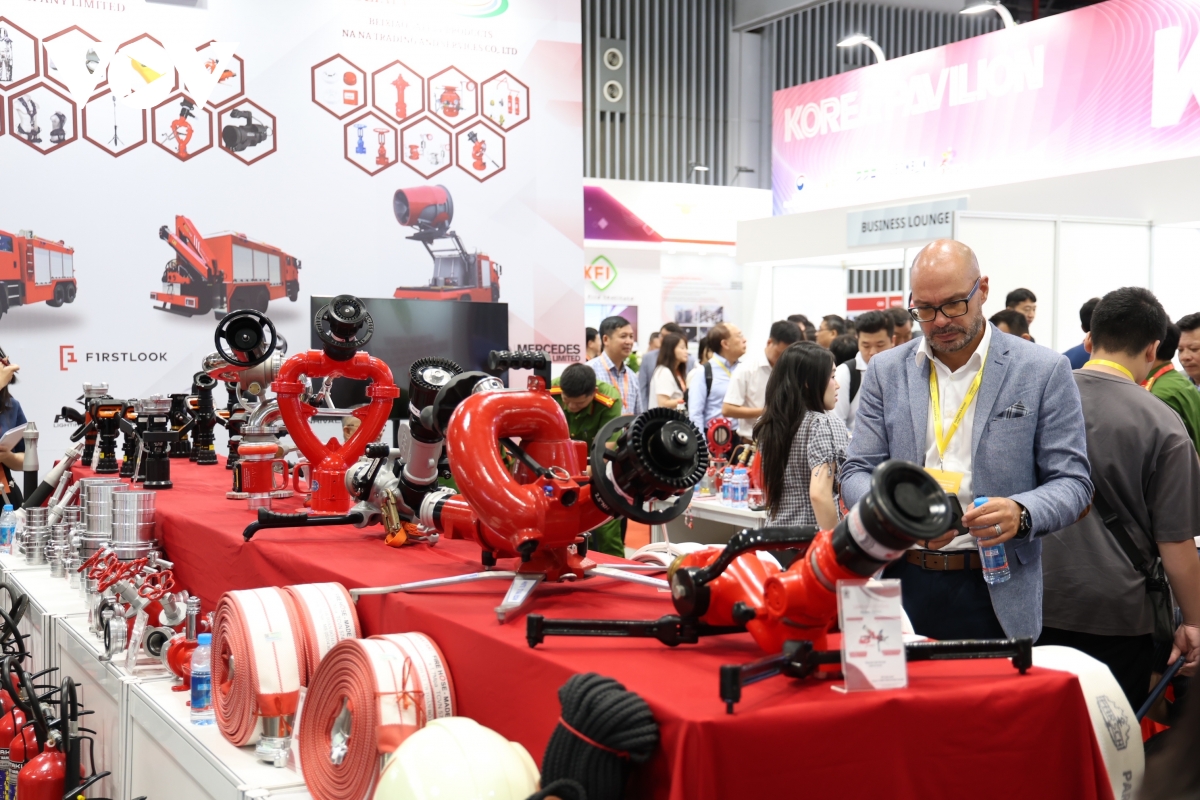 Triển lãm quốc tế về PCCC, CNCH và thiết bị an ninh, an toàn năm 2025, giới thiệu hàng ngàn sản phẩm công nghệ tiên tiến. (Ảnh: Tỷ Huỳnh)