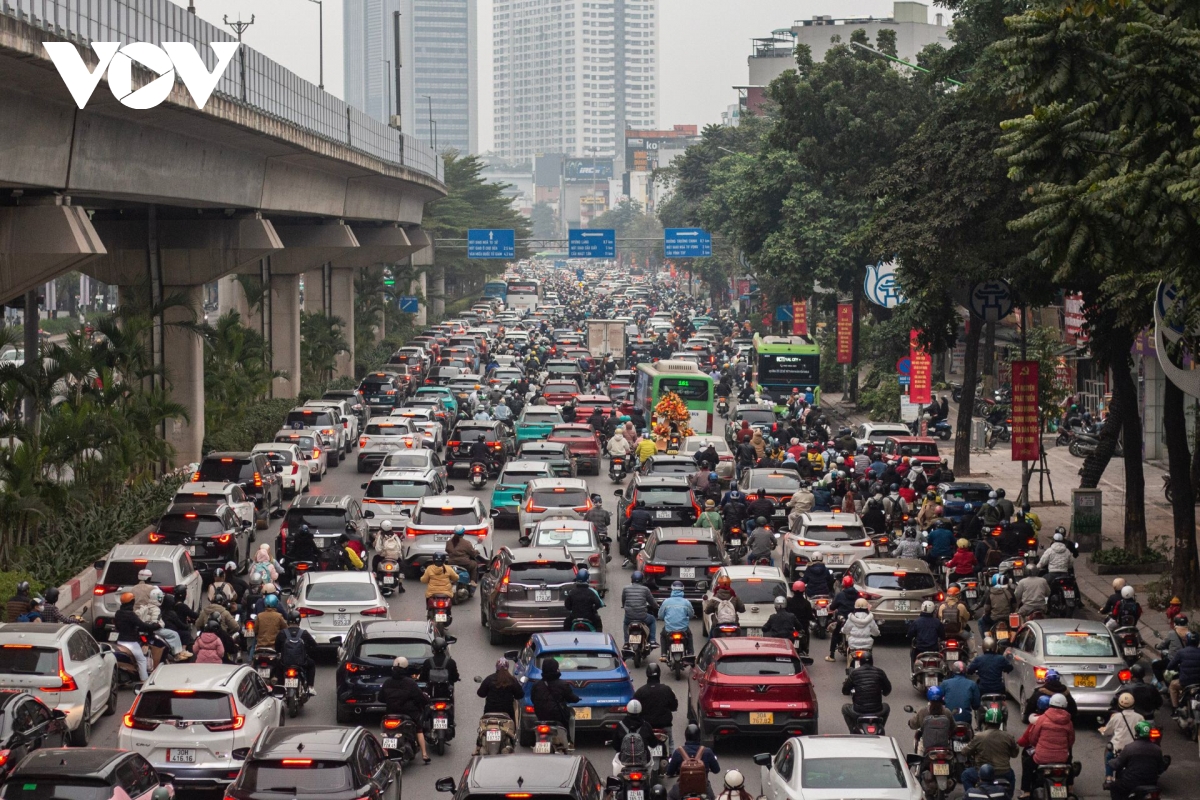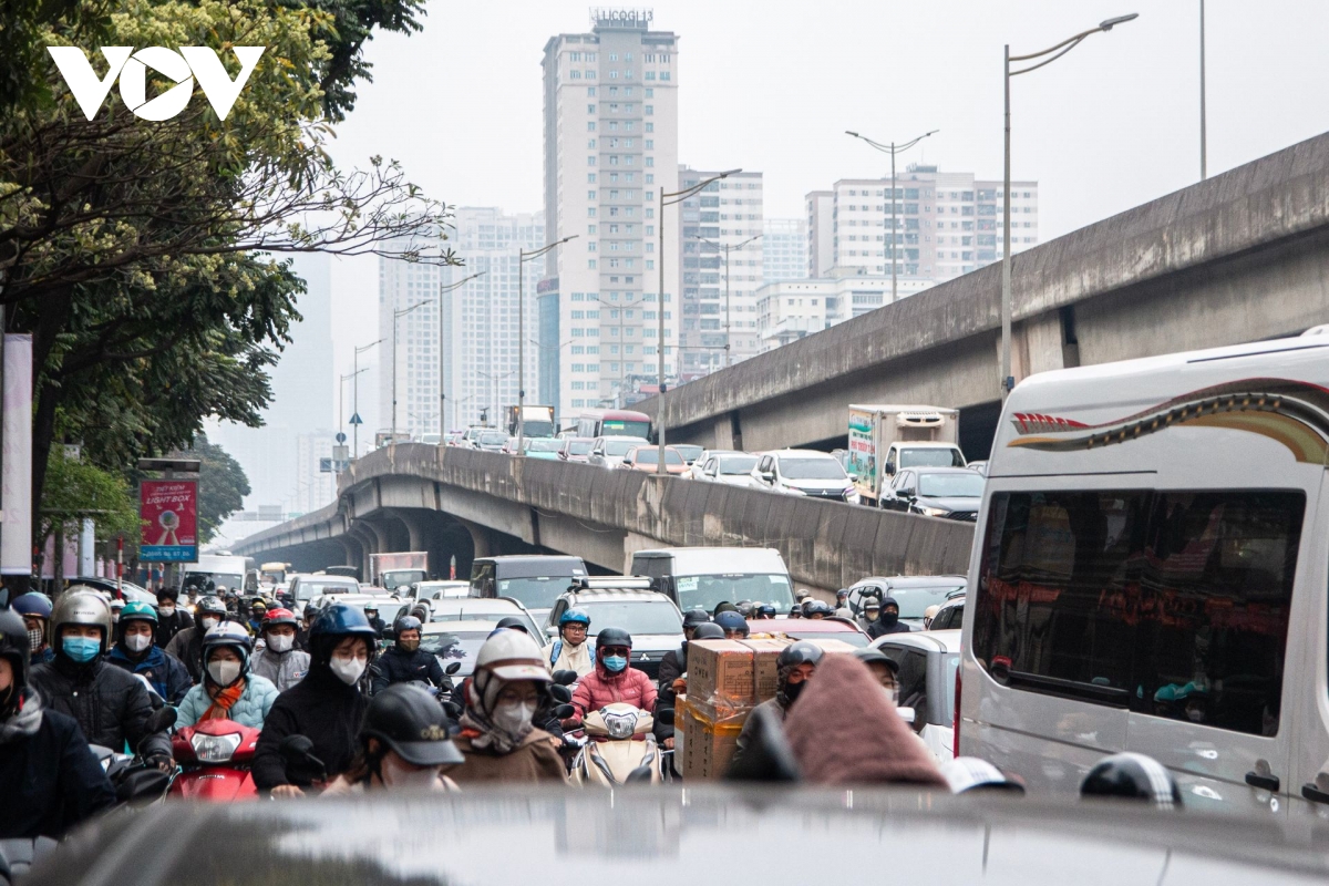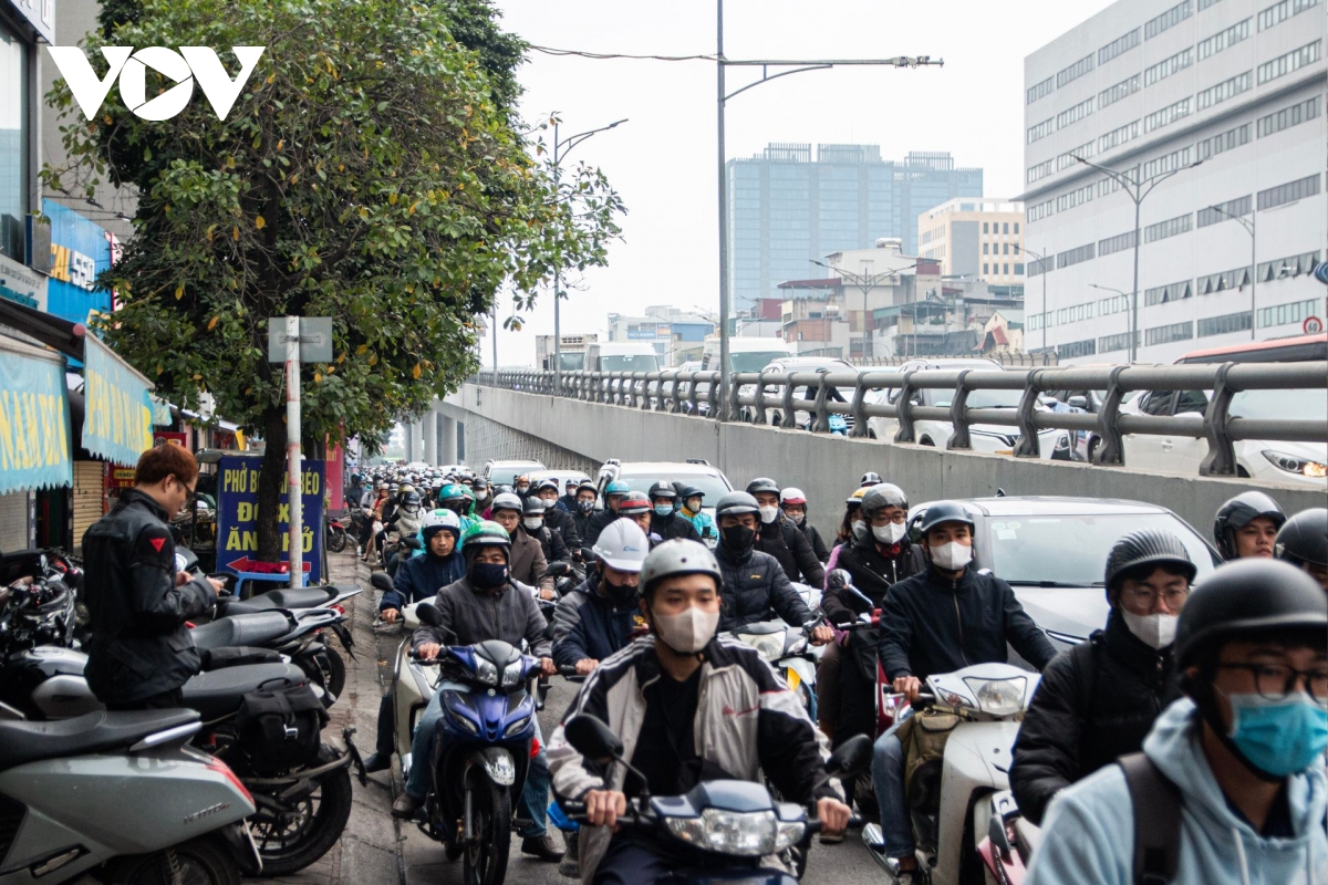 VOV.VN - Sáng ngày đầu tiên đi làm trở lại sau kỳ nghỉ Tết Dương lịch, lượng phương tiện tại Hà Nội tăng cao, nhiều tuyến đường chính trong nội thành đông đúc dẫn đến ùn tắc kéo dài.