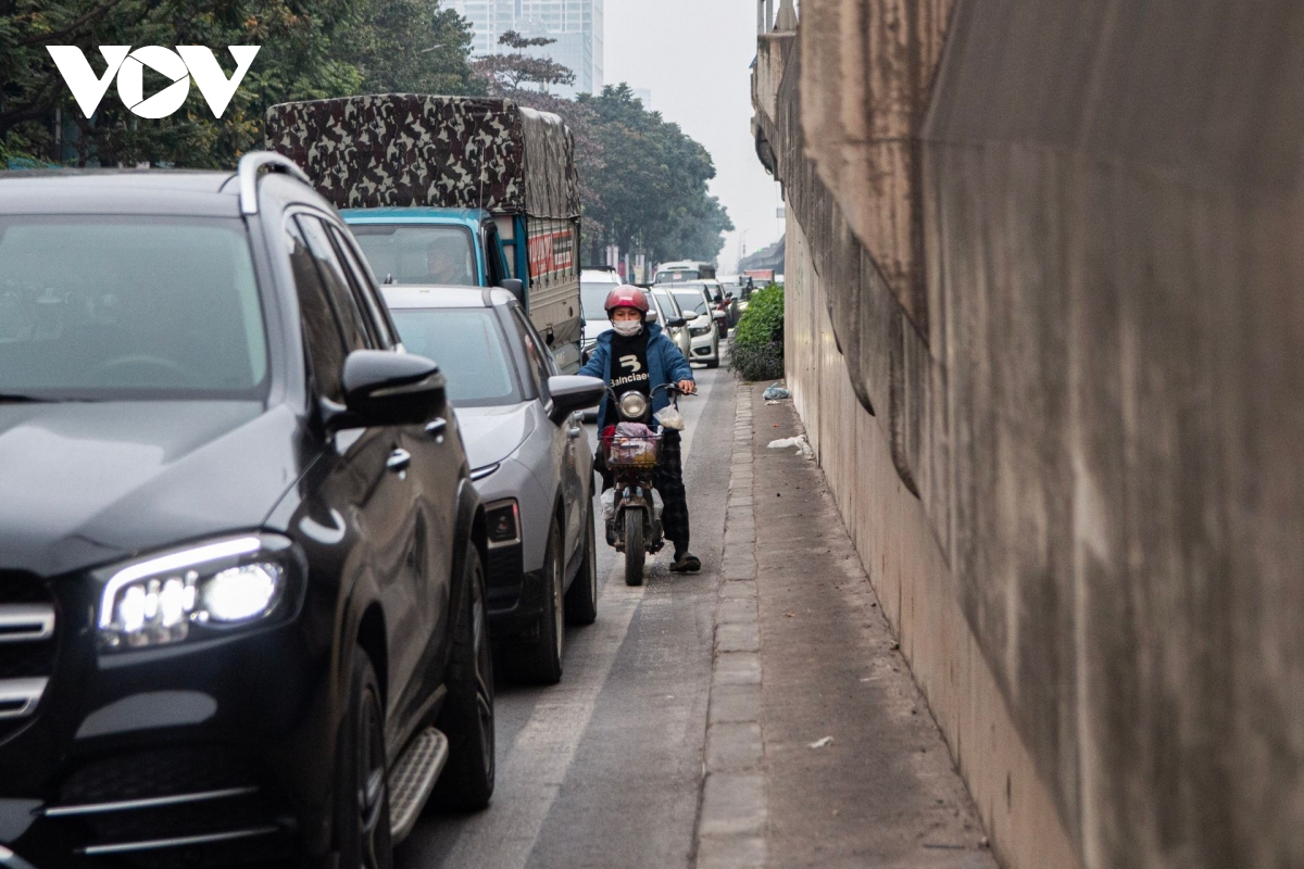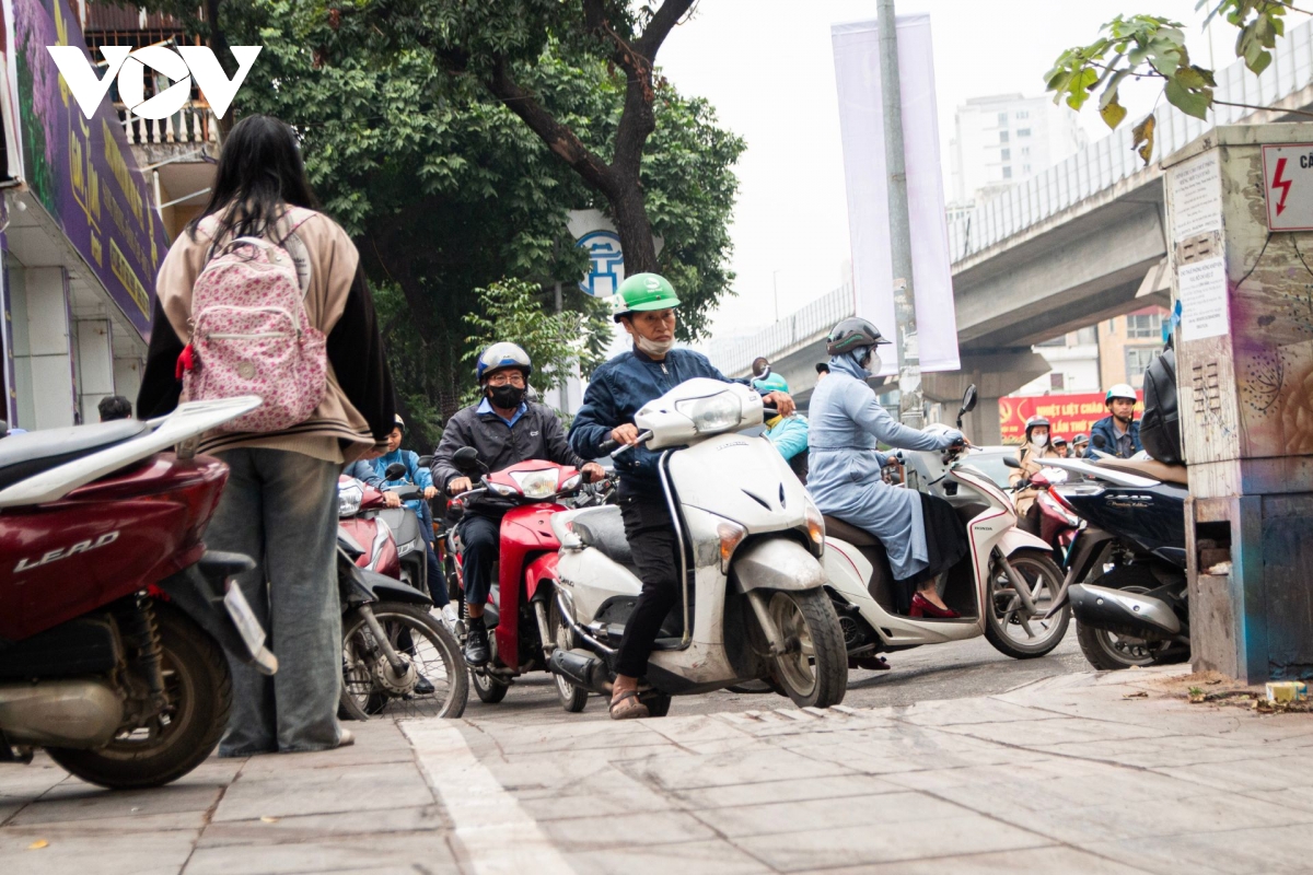 Tuy nhiên, tại một số khu vực tình trạng phương tiện xe máy leo lên vỉa hè lại tái diễn khi giao thông đông đúc xảy ra.