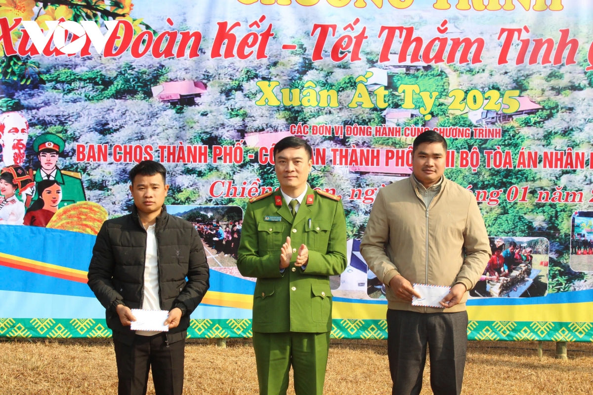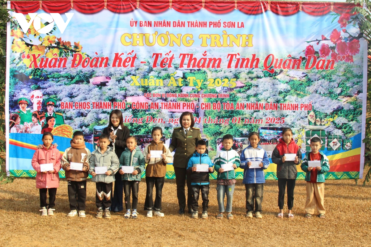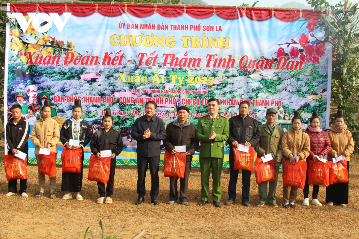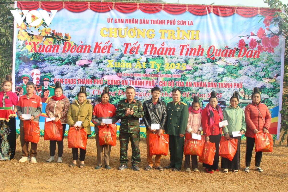 Chương trình “Xuân đoàn kết - Tết thắm tình quân dân” do Ban chỉ huy quân sự, Công an, Viện Kiểm sát nhân dân, Hạt Kiểm lâm và Tòa án nhân dân Thành phố Sơn La phối hợp tổ chức; tạo không khí ấm áp, gần gũi, gắn kết tình quân dân, thể hiện sự quan tâm, chăm lo cho các đối tượng chính sách và người dân bị ảnh hưởng thiên tai trên địa bàn miền núi Sơn La trong thời điểm năm cũ dần qua, năm mới cận kề.