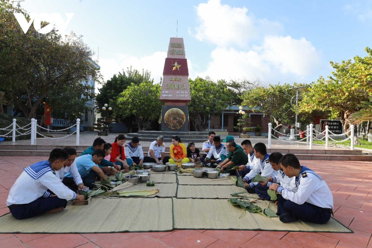 Hoạt động gói bánh chưng chung giữa cán bộ, chiến sĩ và nhân dân trên đảo Trường Sa đã trở thành nét đẹp truyền thống mỗi dịp Tết đến, Xuân về. Không chỉ là chuẩn bị nhu yếu phẩm cho ngày Tết, mỗi chiếc bánh chưng được hoàn thành còn gói trọn tình đoàn kết quân dân cá nước thắm thiết.