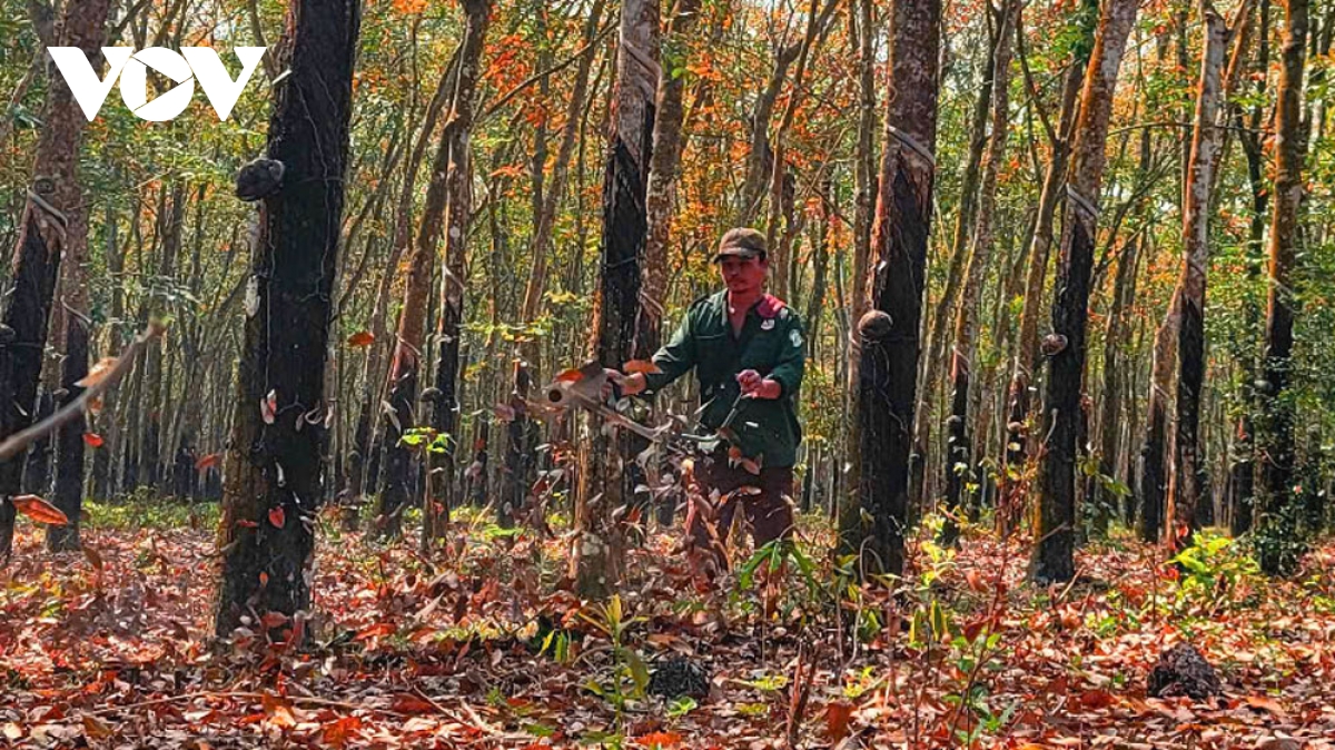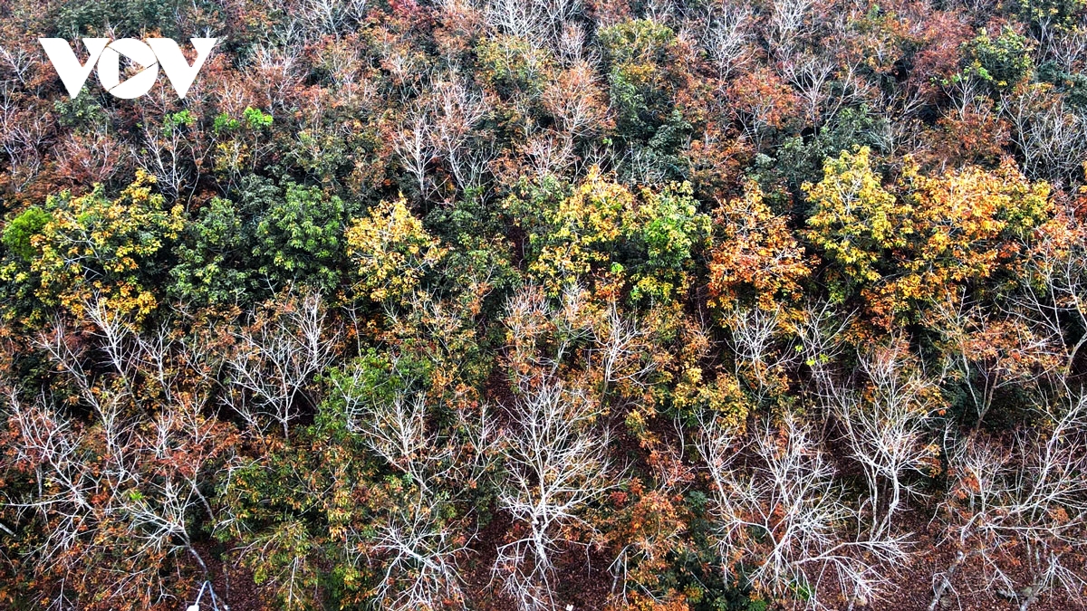 VOV.VN - Bình Phước và Bình Dương, hai tỉnh có diện tích trồng cao su lớn nhất cả nước, mỗi độ cuối năm lại trở nên rực rỡ sắc màu. Những cánh rừng cao su bạt ngàn bắt đầu thay lá, tạo nên một khung cảnh thiên nhiên tuyệt đẹp.