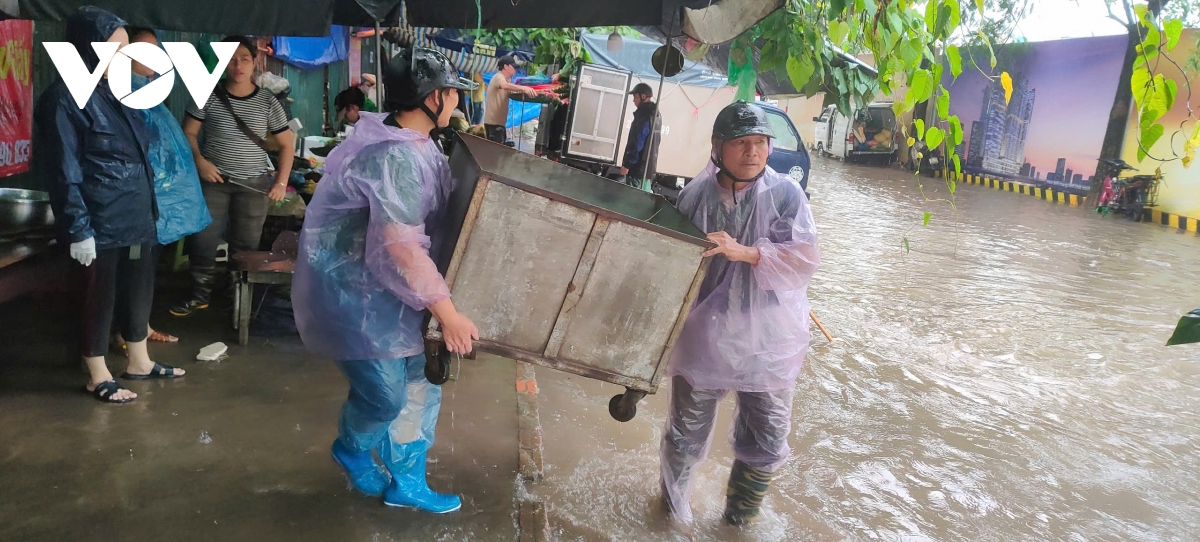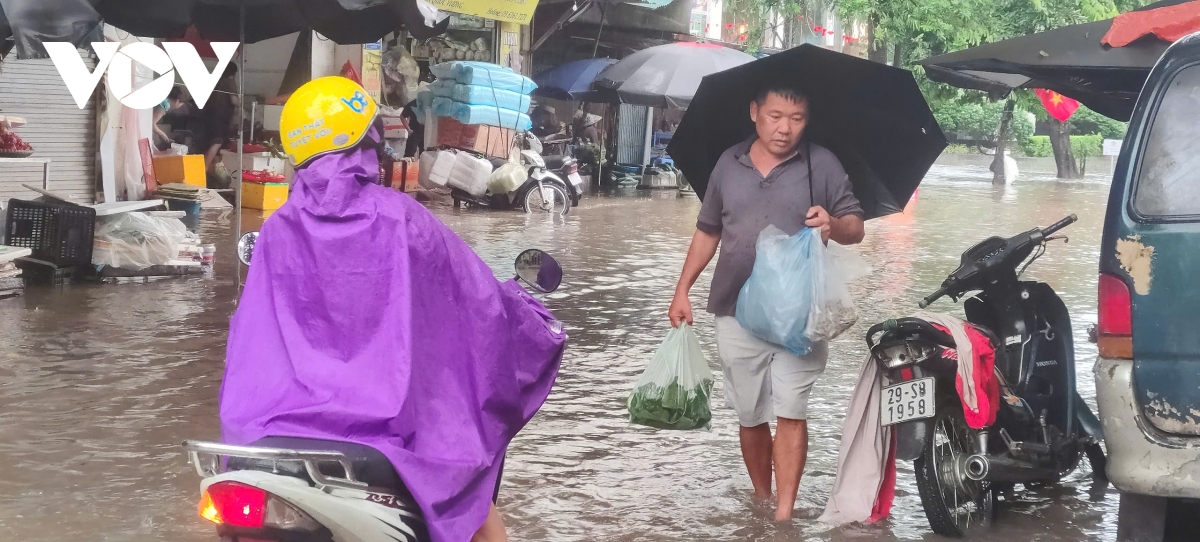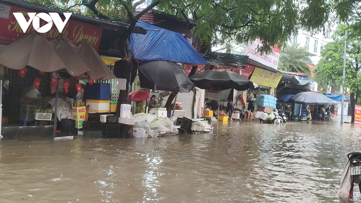 VOV.VN - Trận mưa lớn kéo dài khiến nhiều tuyến phố Hà Nội ngập nặng, giao thông tê liệt. Thế nhưng, tại chợ cóc trên đường Trần Quốc Vượng, phường Cầu Giấy, Hà Nội, các tiểu thương vẫn tất bật mưu sinh giữa dòng nước ngập.