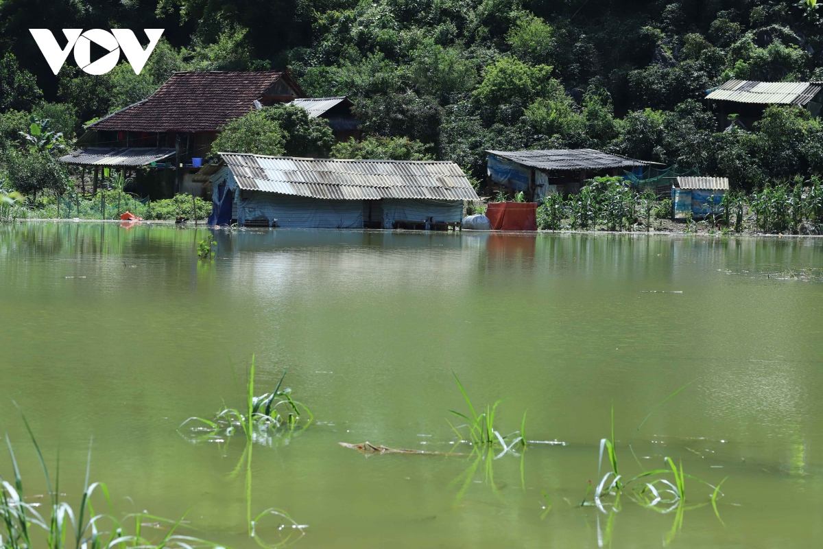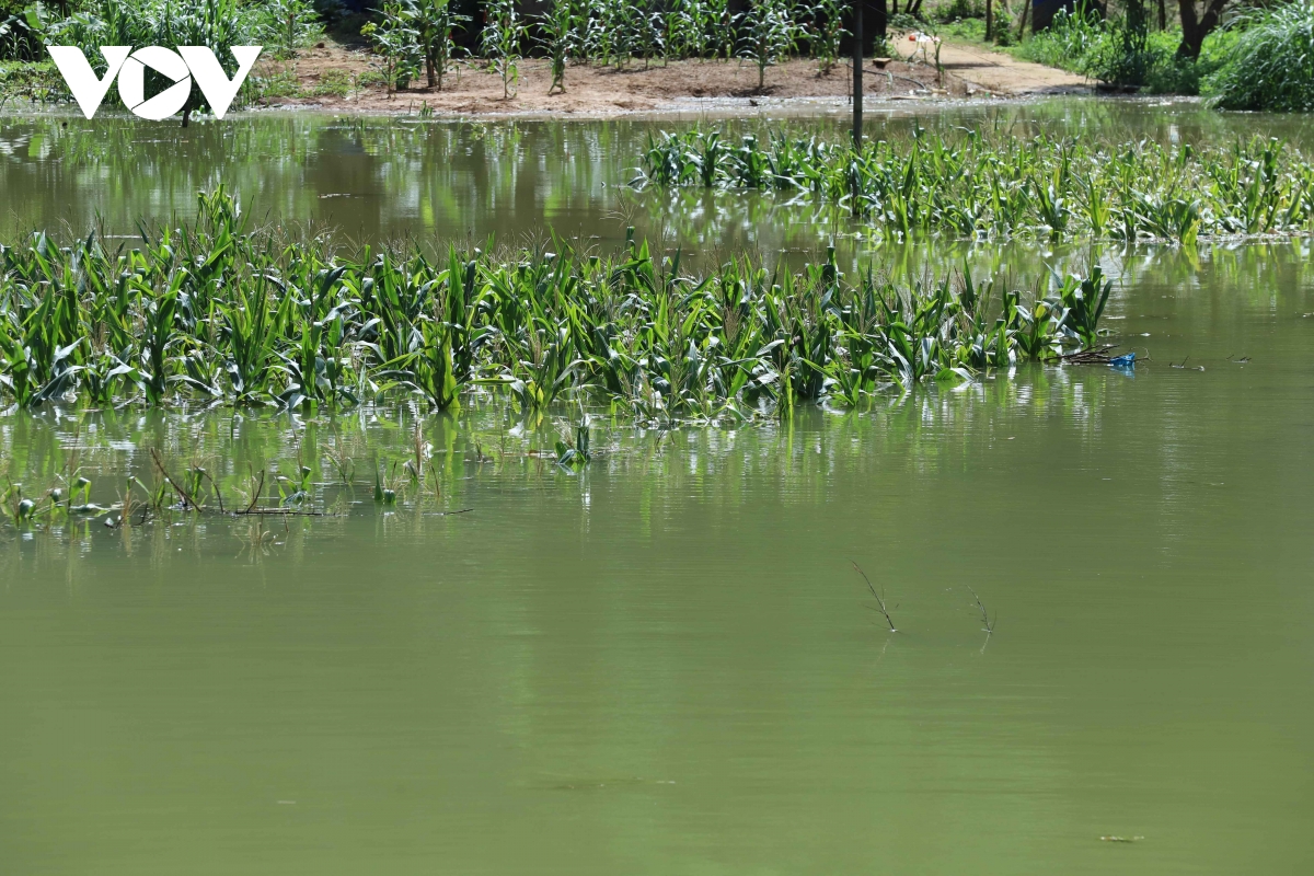 Mưa lũ gây ngập úng trên diện tích 2 héc ta, sâu 2-3m tại bản Phiêng Nghè.