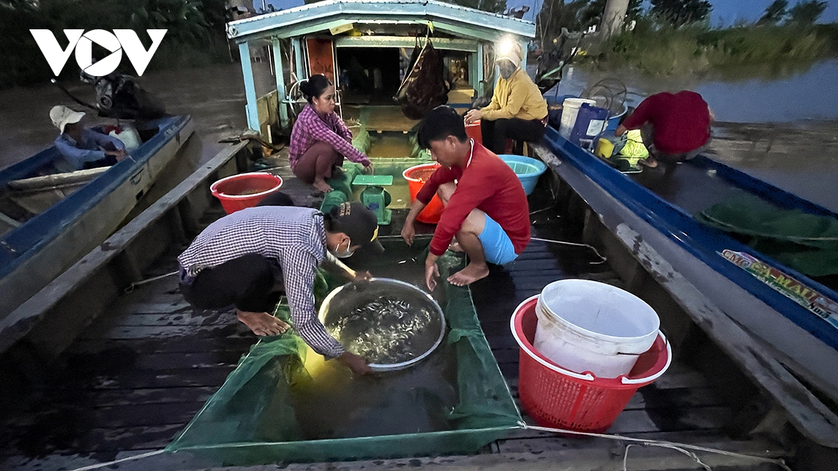 “Mùa này, tôi đi thu mua được 2 tháng rồi. Mỗi ngày bình quân cá linh khoảng hơn tấn; còn cá chợ (loại các khác) ít lắm chỉ khoảng hơn 100kg thôi chứ không có nhiều; năm ngoái cá chốt sọc, chốt giấy có nhiều, nhưng năm nay lại ít, cá linh có nhiều hơn năm ngoái. Hiện cá linh dao động từ 20-25.000/1kg, đầu mùa nó mắc hơn cũng khoảng 70-80.000; cá chốt giấy thì tùy theo 70-80.000/1kg, còn cá chốt sọc thì 20-25.000/1kg chứ không có cao”- ông Điền nói.