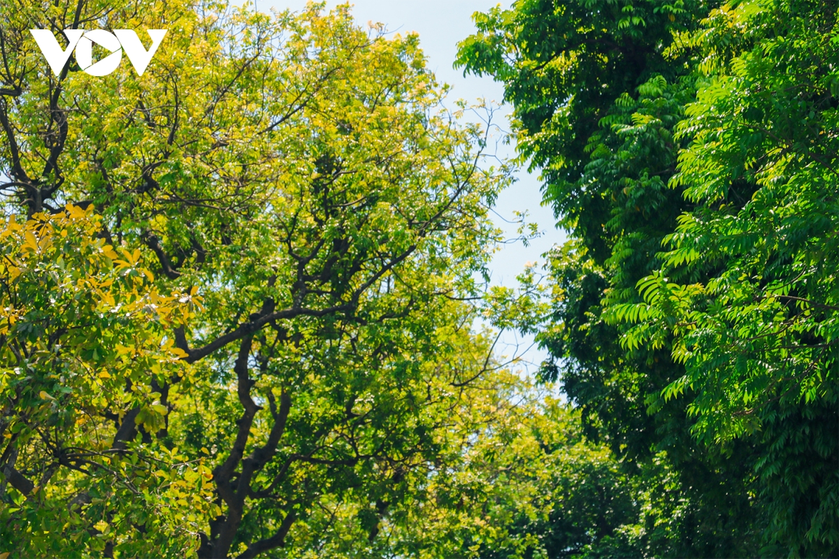 Nắng Thu vàng xuyên qua các tán lá cây xum xuê, tạo nên khung cảnh đẹp đến nao lòng.